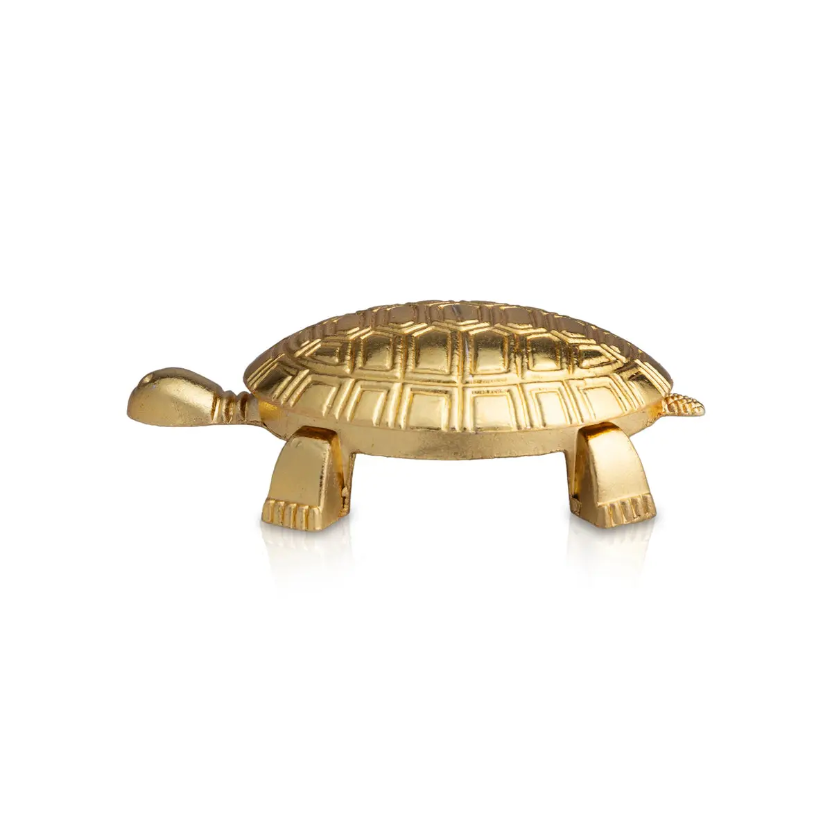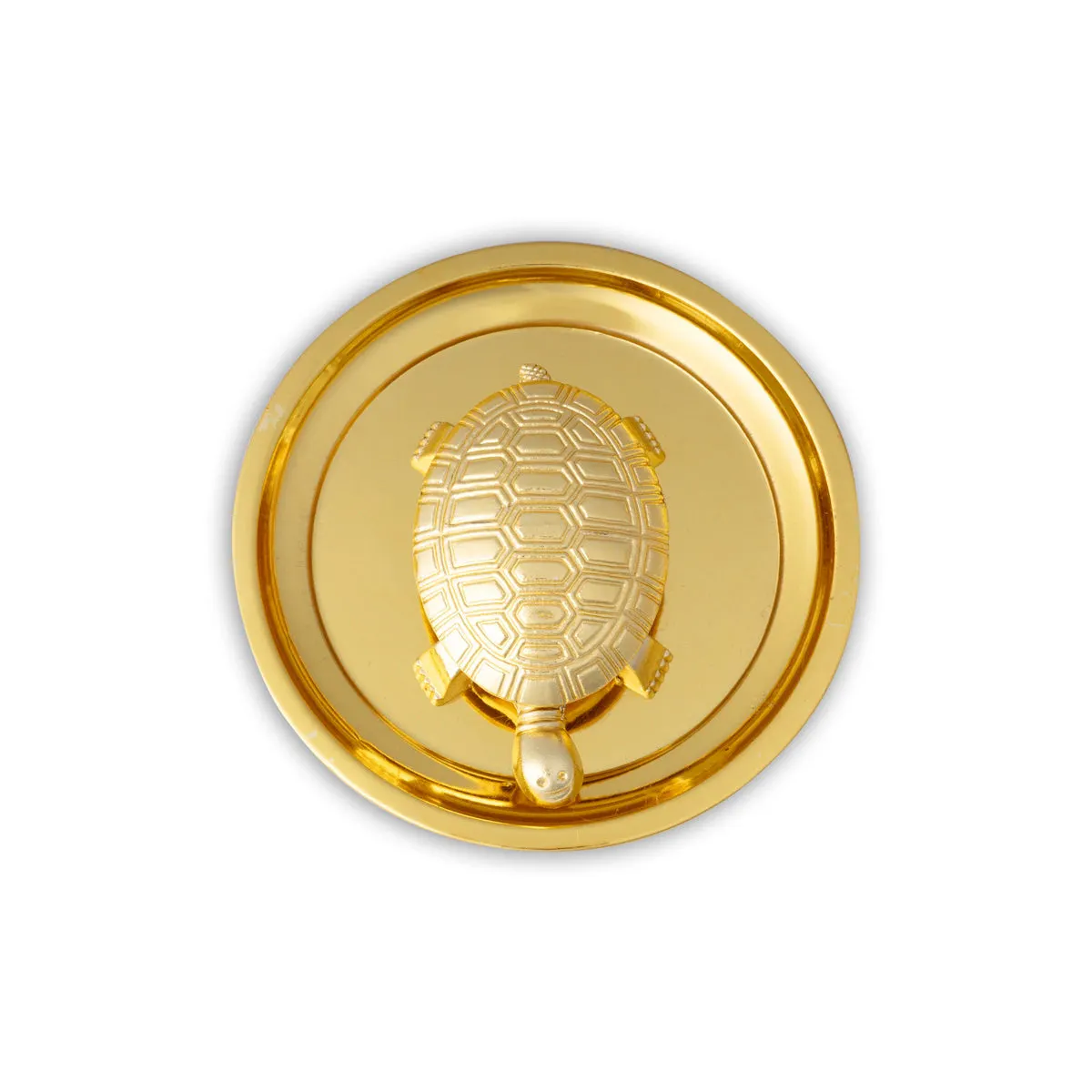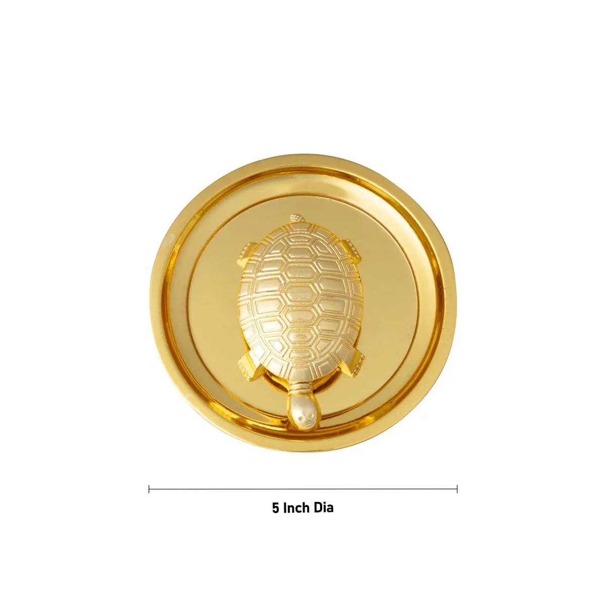 Tortoise Statue With Plate - 5 Inches | Gold Polish Tortoise Idol With Plate for Home/ 100 Gms Approx