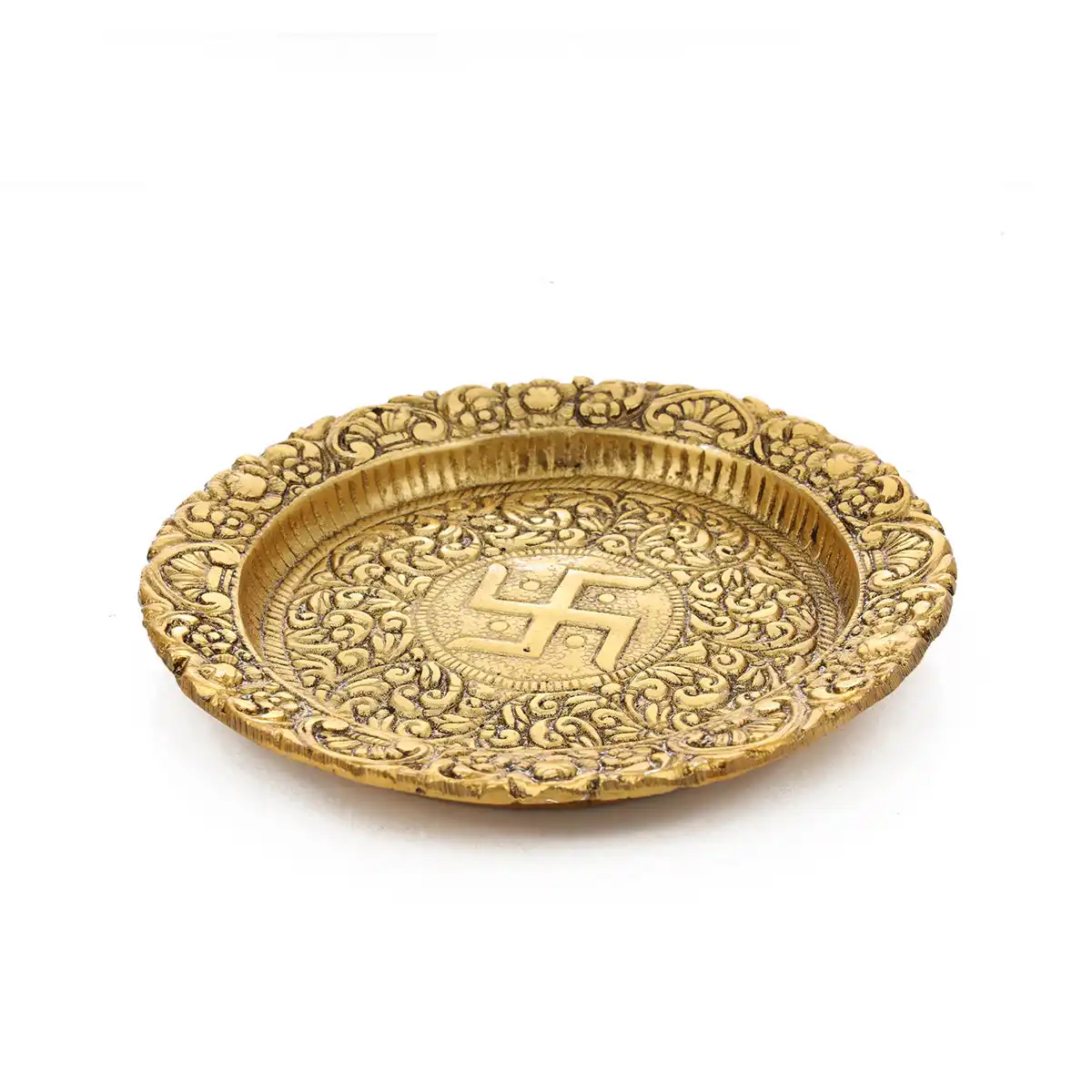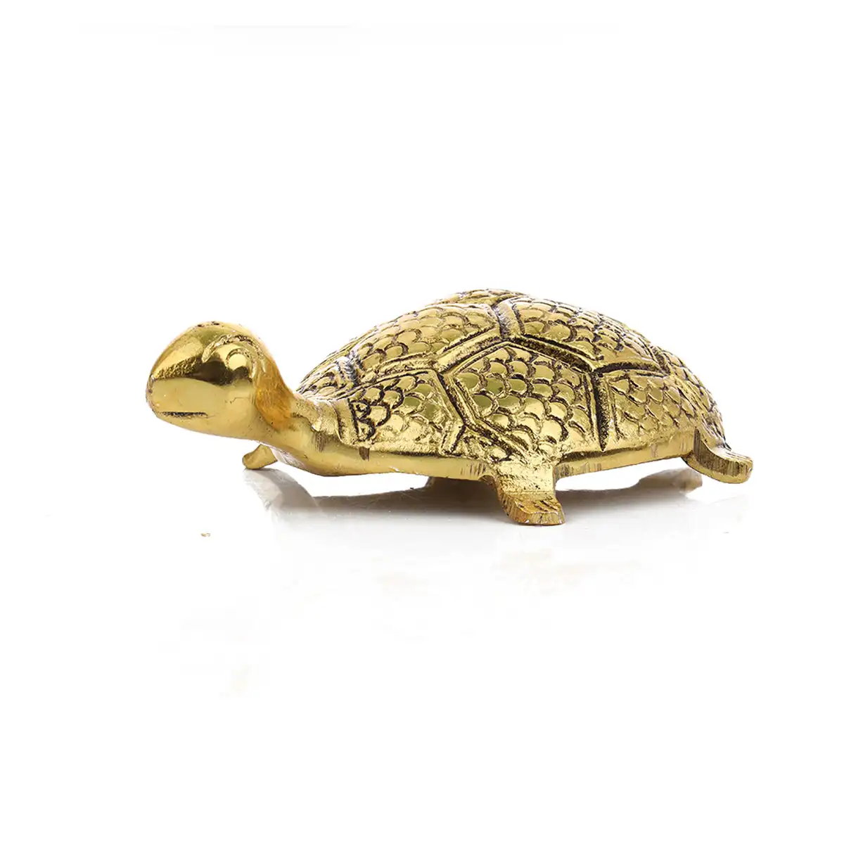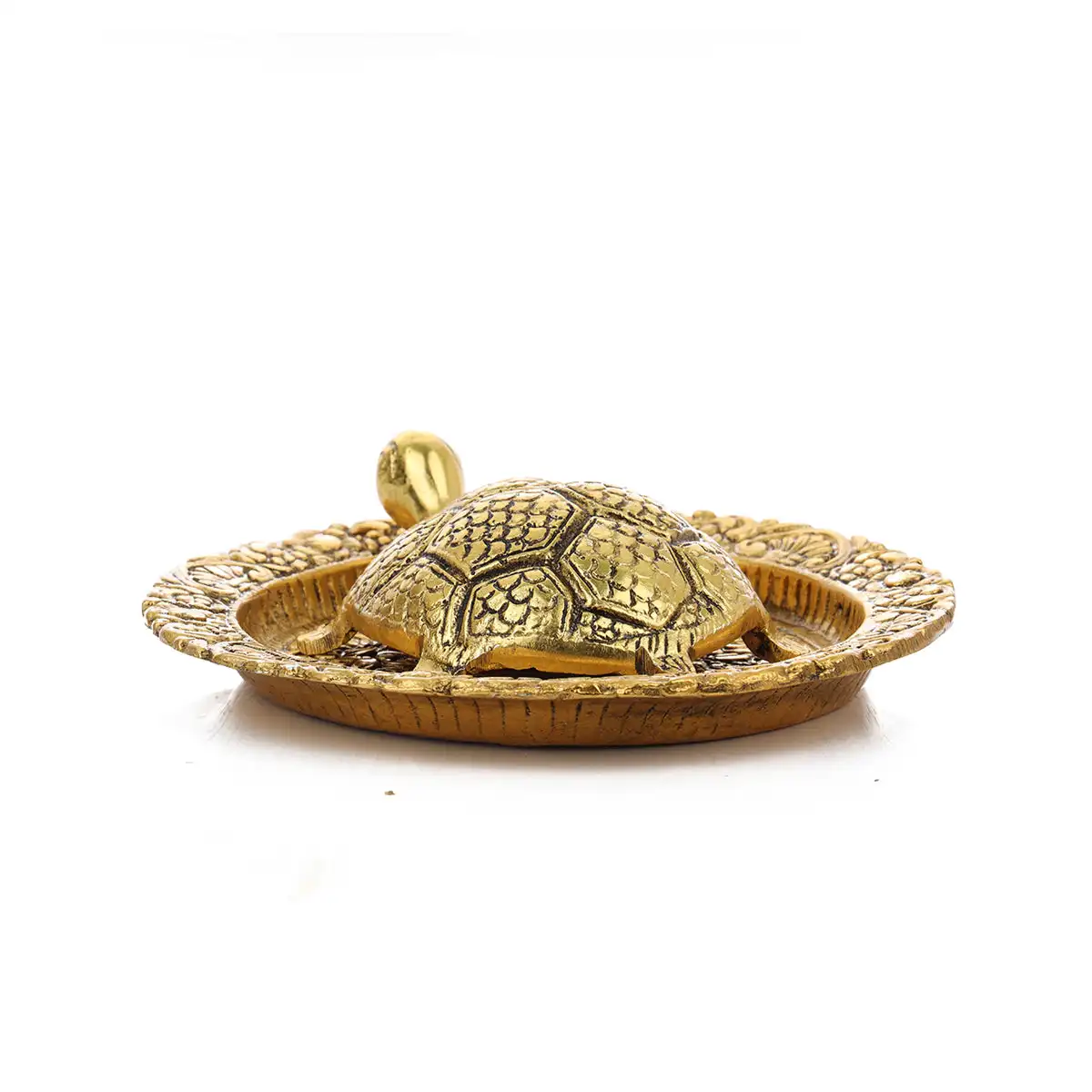 Tortoise Statue with Plate - 6 Inches | Gold Polish Feng Shui Turtle for Pooja