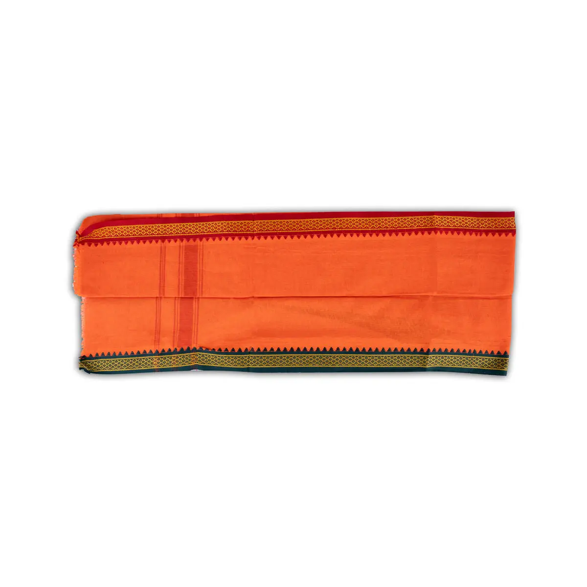 Towel - 30 x 60 Inches | Mla Border Design Angavastram/ Orange Colour Kasavu Shawl for Men