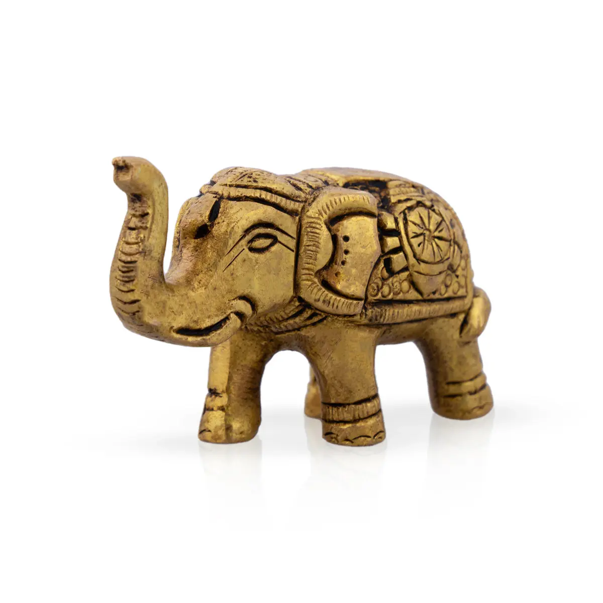 Trunk Up Elephant Statue - 1 x 3 Inches | Antique Brass Idol/ Elephant Figurine for Wealth & Good Luck