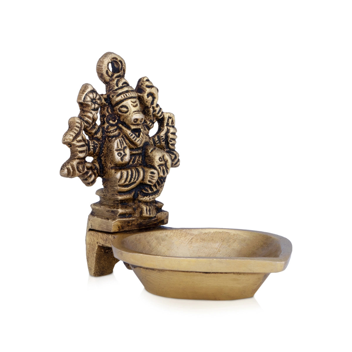 Varahi With Diya - 2 x 2.5 Inches | Antique Brass Lamp/ Brass Vilakku for Pooja/ 90 Gms Approx