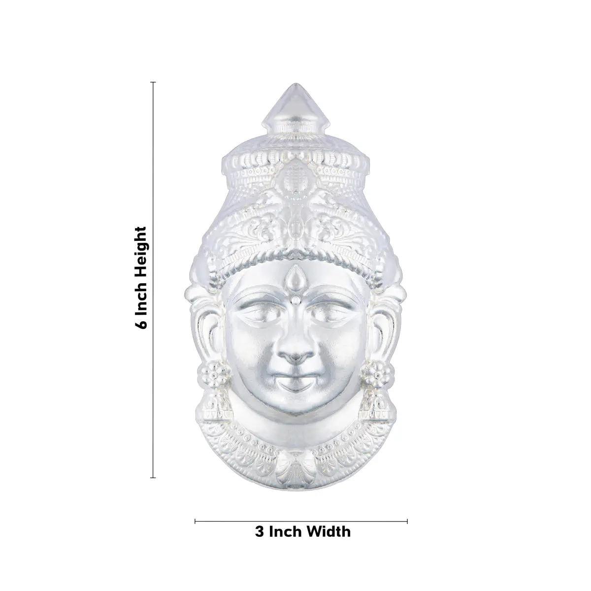 Varalakshmi Ammavari Face - 6 x 3 Inches | White Metal Lakshmi Face/ Amman Face for Deity/ 75 Gms Approx