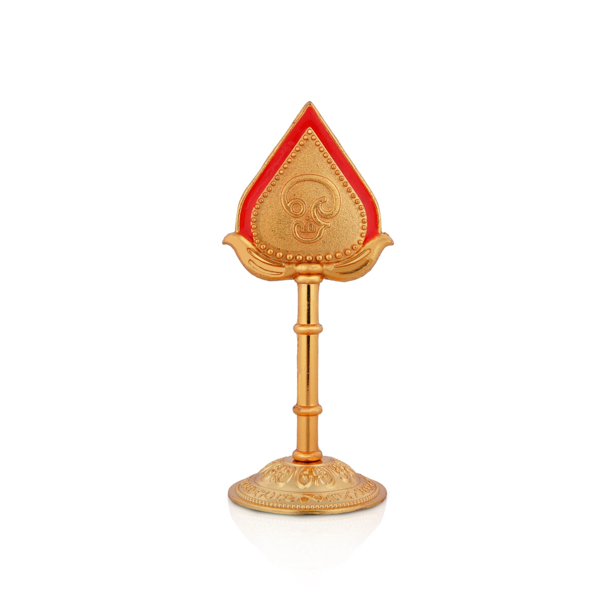 Vel With Base - 4.5 x 2 Inches | Metal & Gold Polish Murugan Vel/ Pattai & Om Design Vel for Pooja
