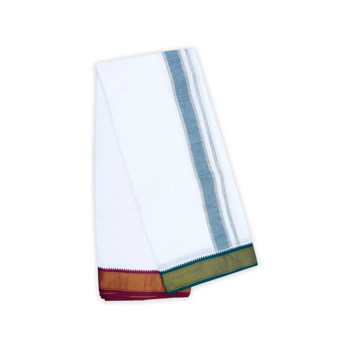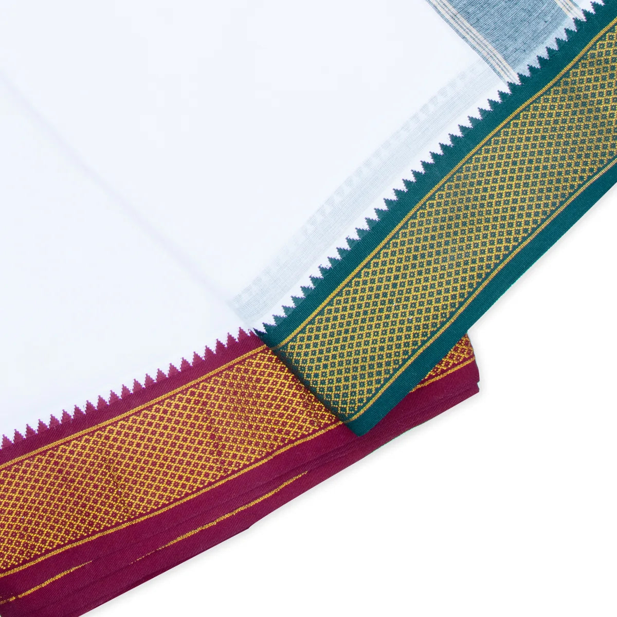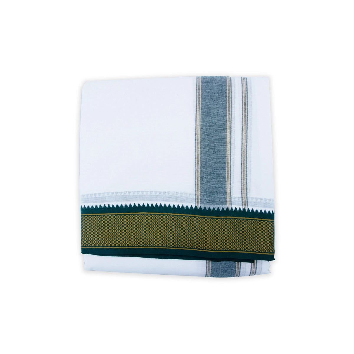 Veshti - 10 x 6 Yards | 10 Kan MayilKan Border Dhoti/ White Vesti for Men