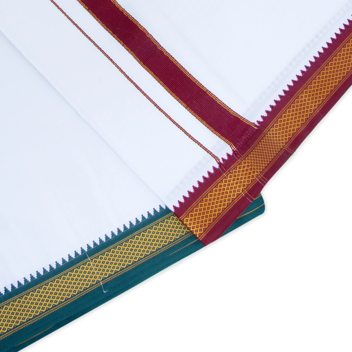 Veshti - 2 Mtrs | 5 Kan Mayilkan Border Dhoti/ White Vesti for Men
