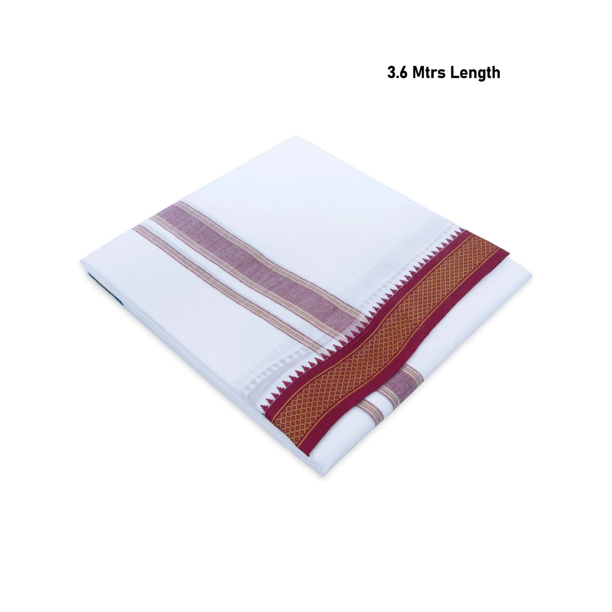 Veshti - 3.6 Mtrs | White Vesti/ 5 Kan Mayilkan Border Dhoti for Men