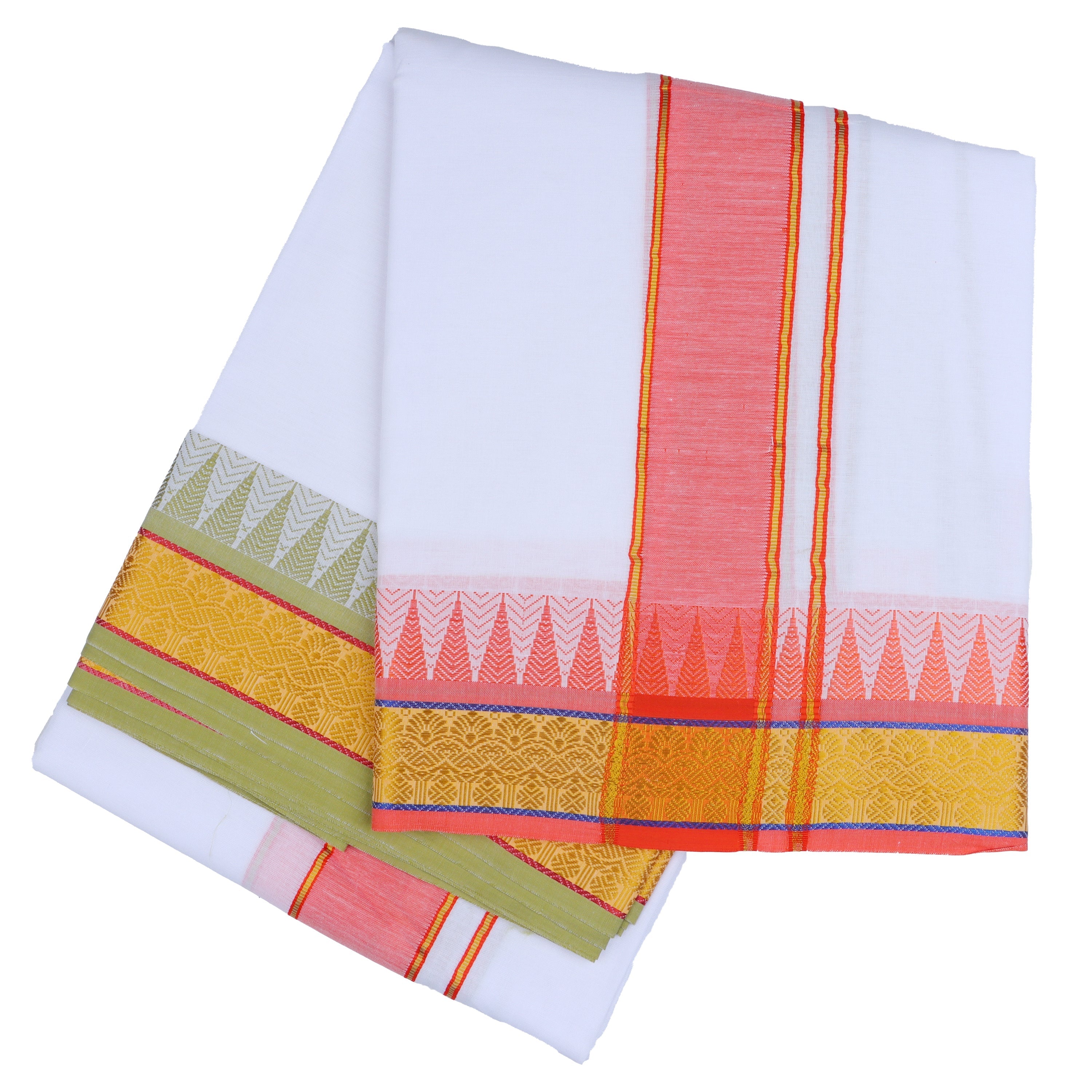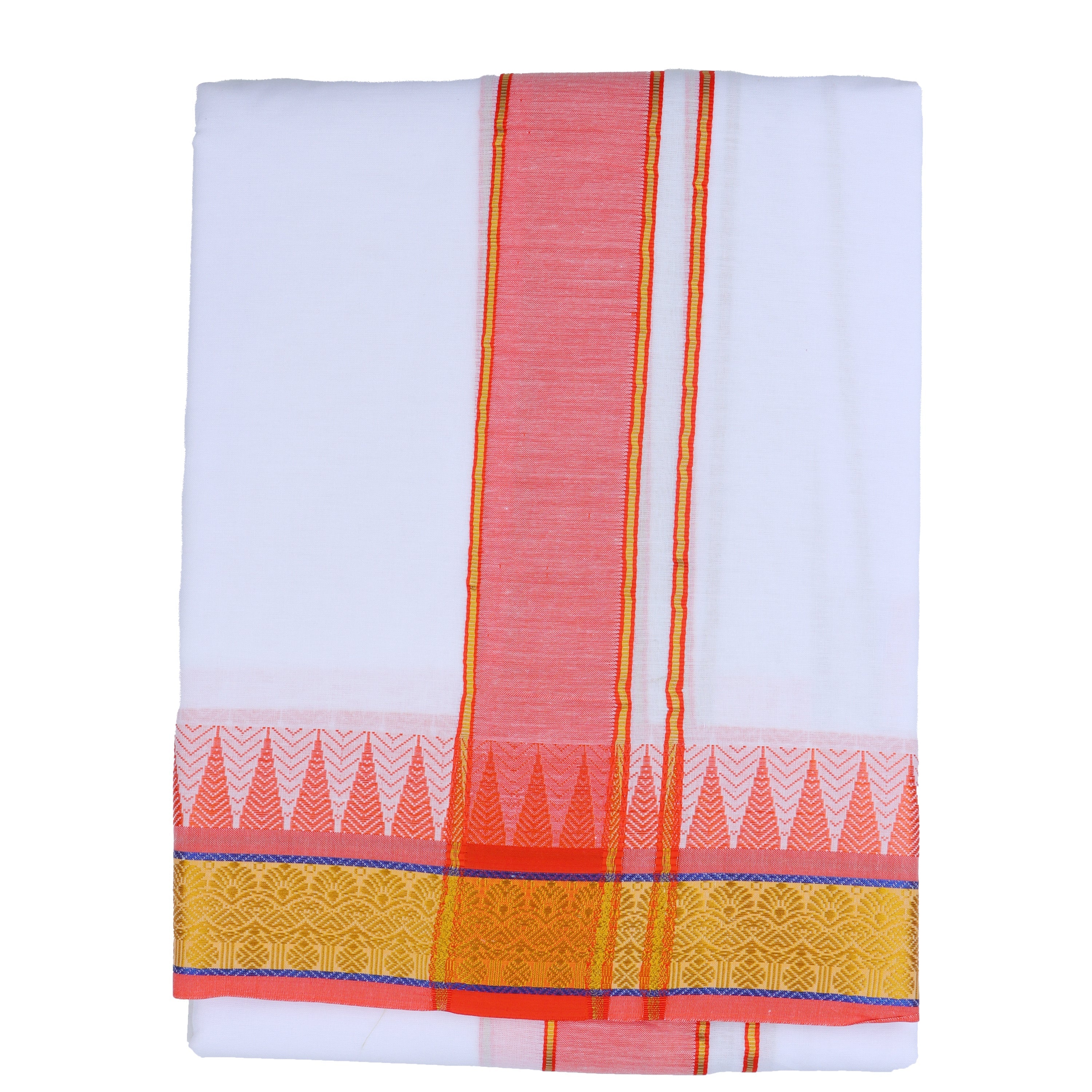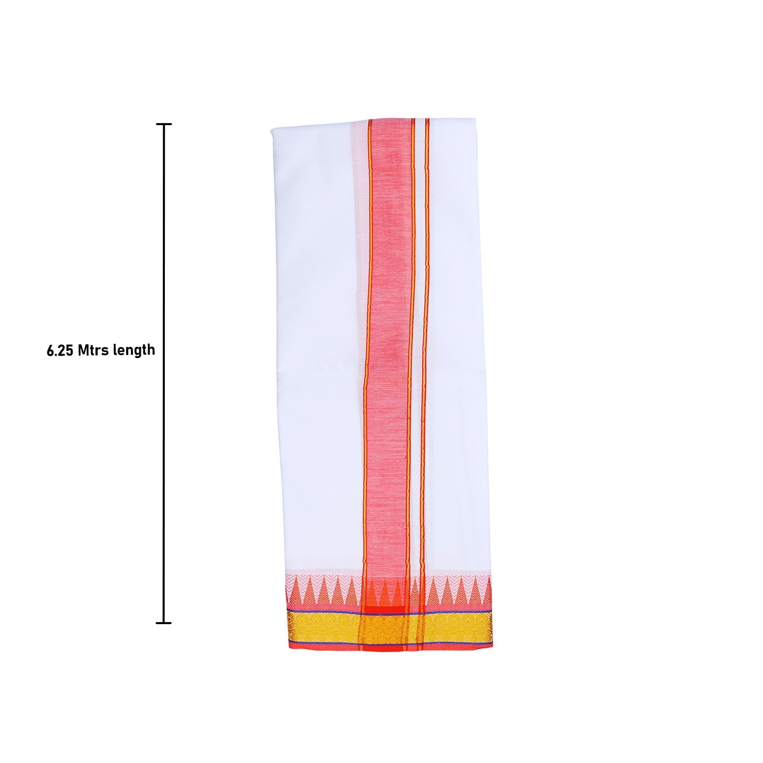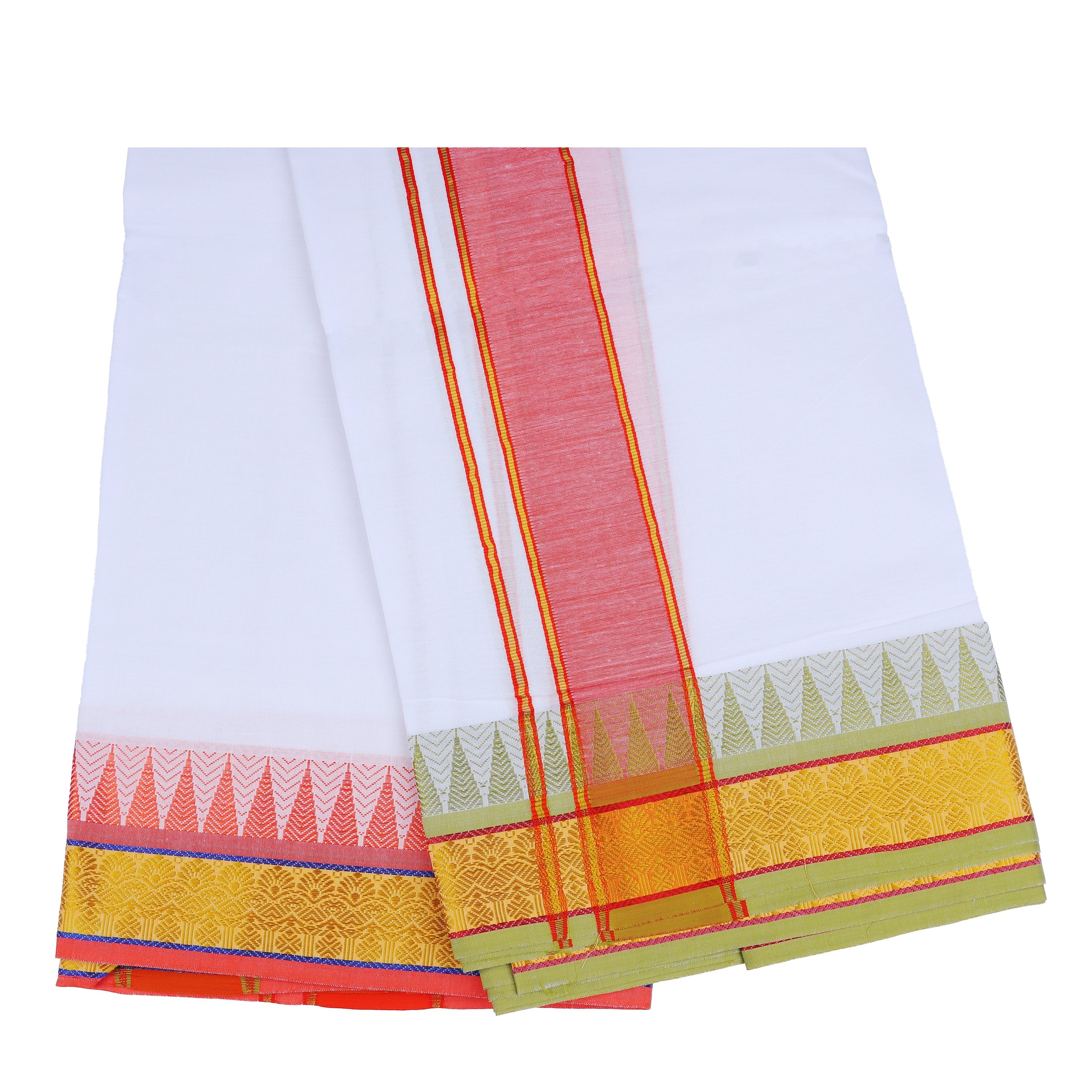 Veshti - 9 x 5 Muzham - Temple Pet | Rich Cotton Vesti/ Dhoti for Men/ White Colour/ Assorted Design