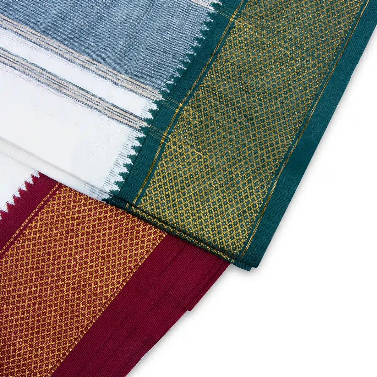 Veshti - 9 x 5 Yards | 16 Kan MayilKan Jari Border Dhoti/ Half White Vesti for Men