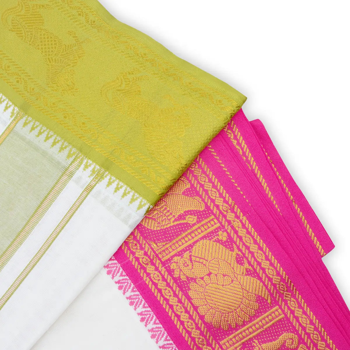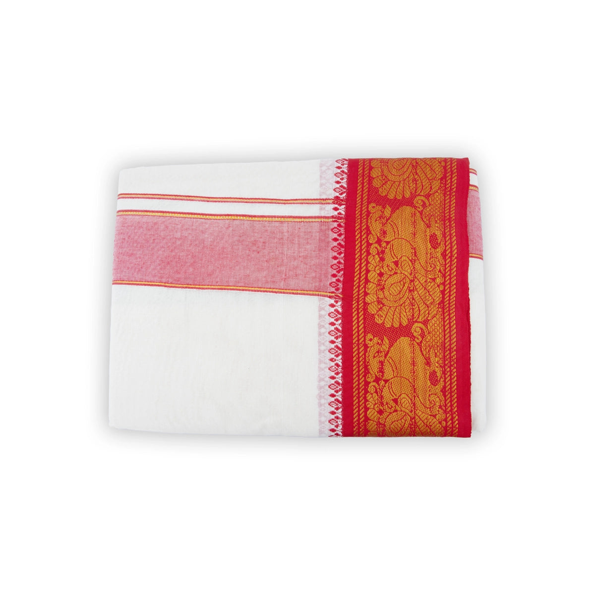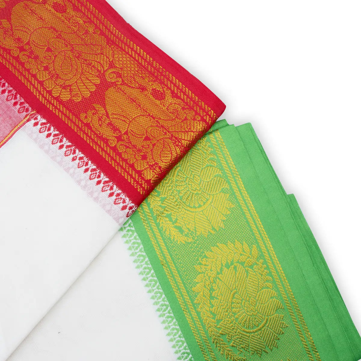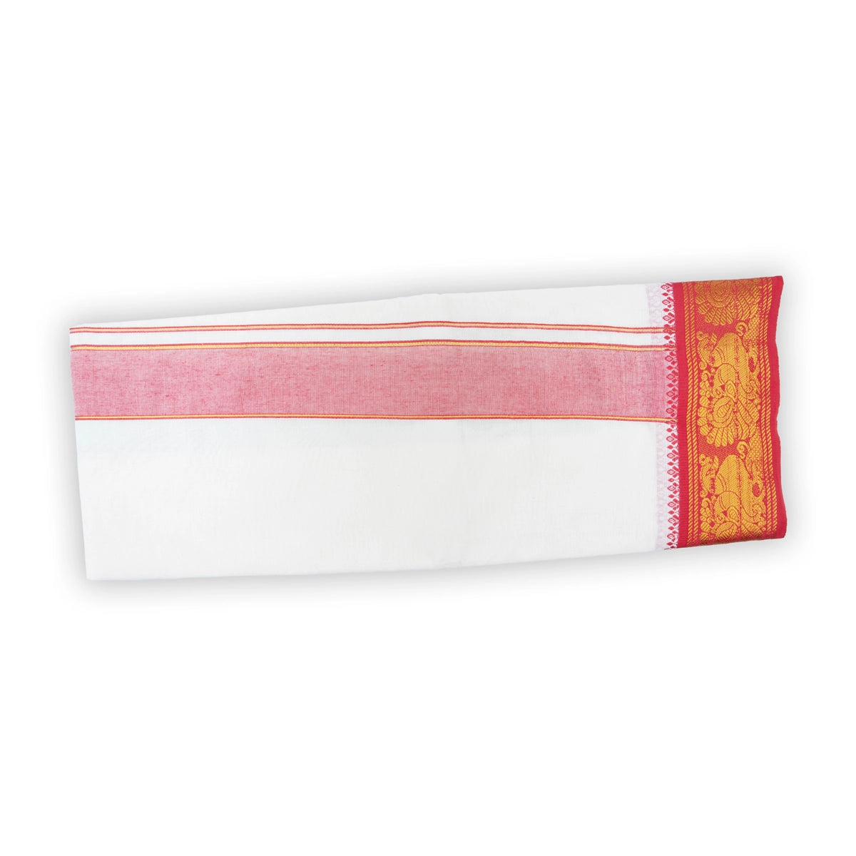 Veshti - 9 x 5 Yards | 5 Inches Jacquard Border Dhoti/ Half White Vesti for Men