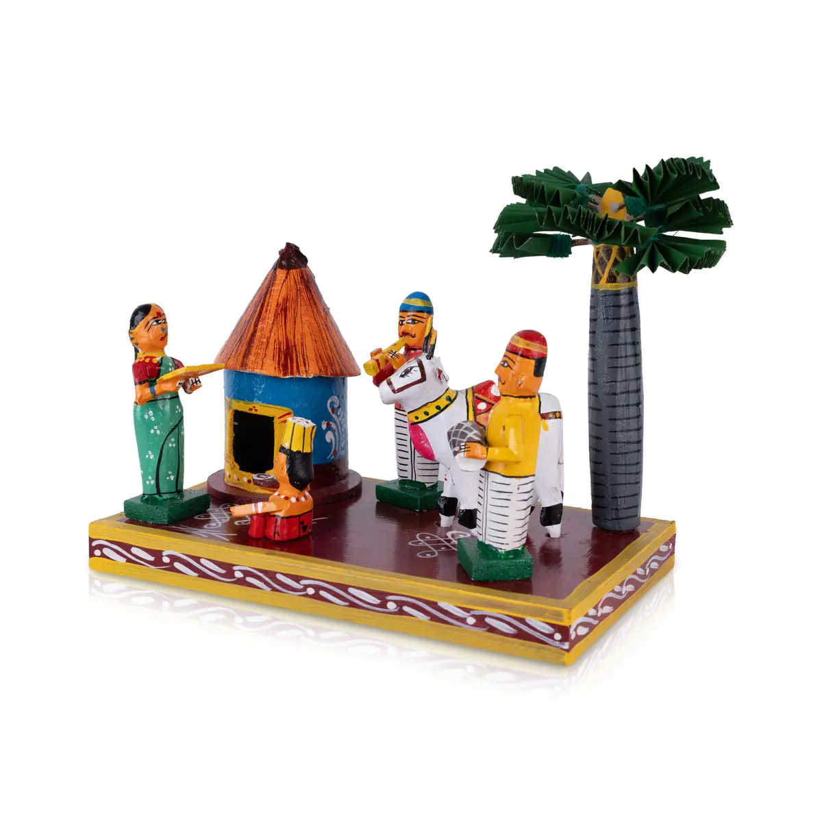 Village House Kondapalli Toy - 8 x 10 Inches | Wooden Statue/ Handmade Showpiece for Home Decor