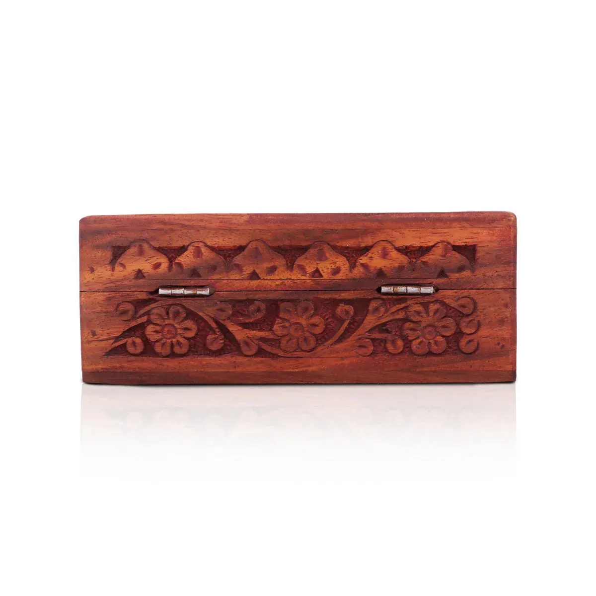 Wooden Box - 2 x 6 Inches | Wooden Jewellery Box/ Brass Work Wooden Storage Box for Women