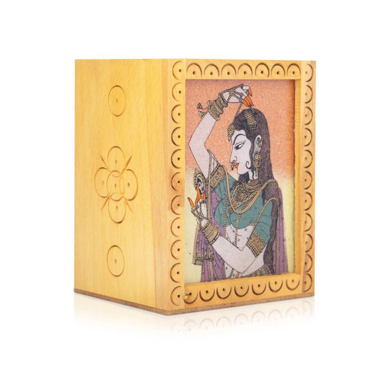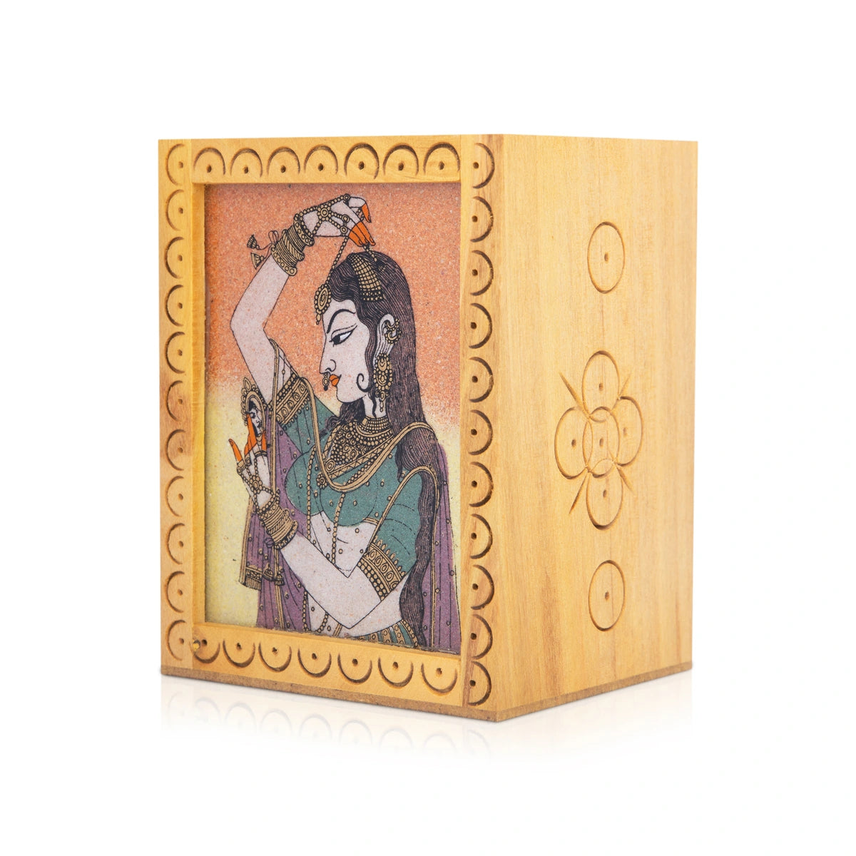 Wooden Pen Stand - 4 x 3 Inches | Gem Stone Pen Holder for Desk