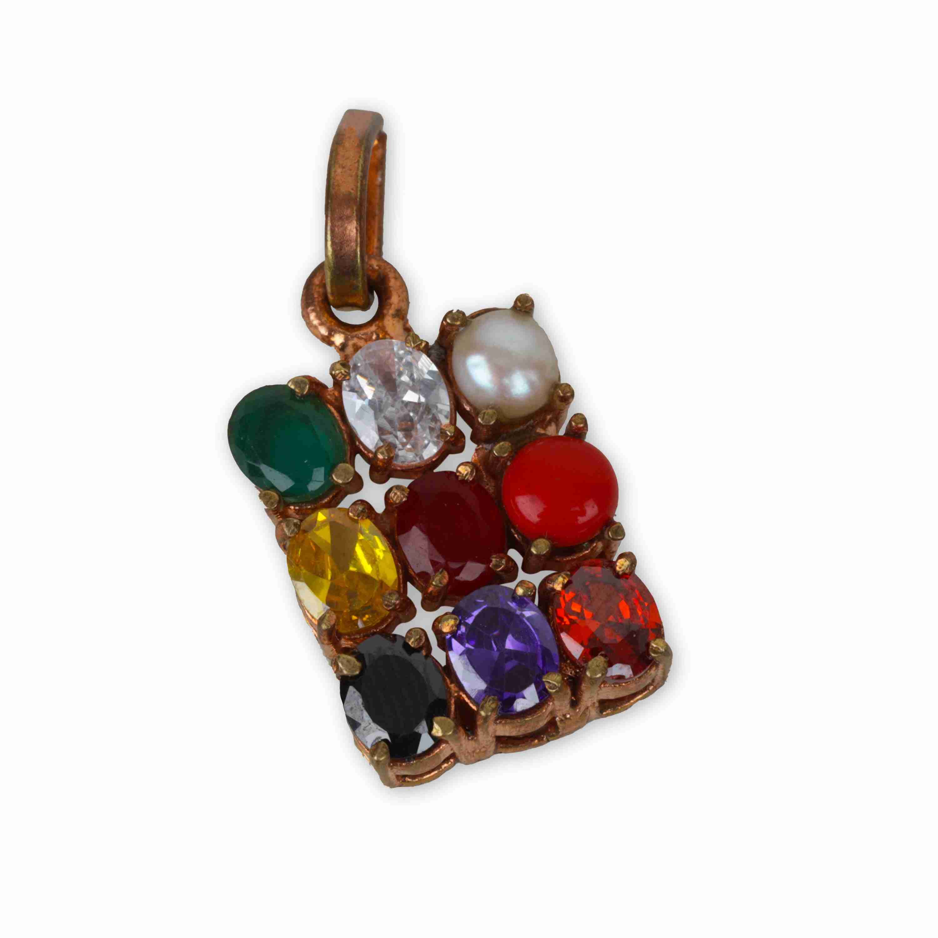 Navaratna Pendant - 1 x 0.5 Inch | Navratna Locket/ Navaratna Stones Dollar for Men and Women