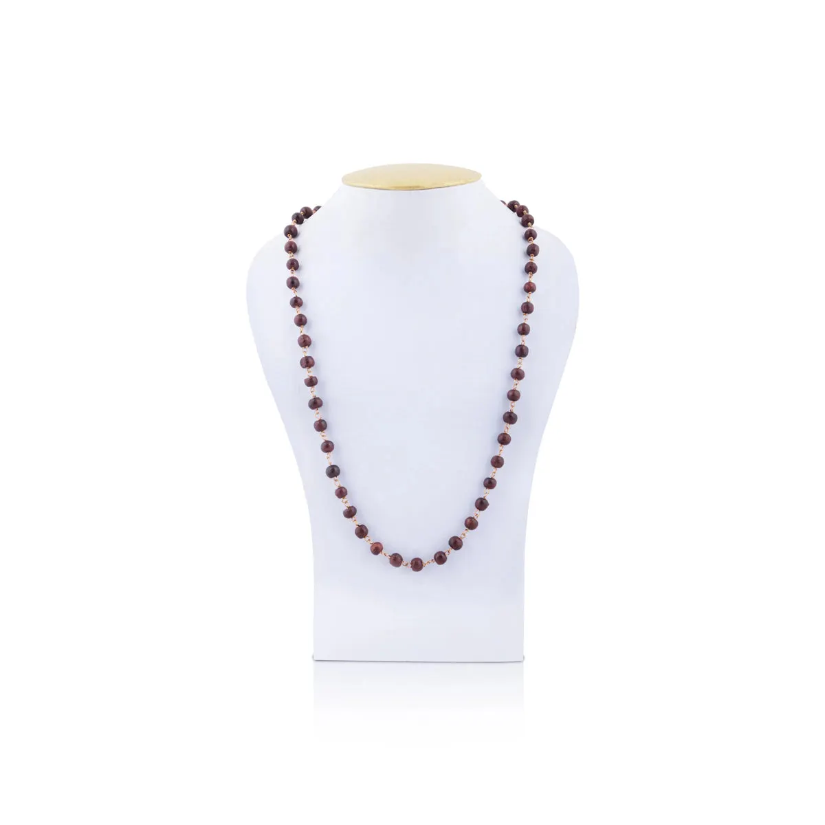 Red Chandan Mala With Copper Knot - 29 Inches | 8 mm/ 108 Beads Sandalwood Mala/ Kanthi Mala for Maditation