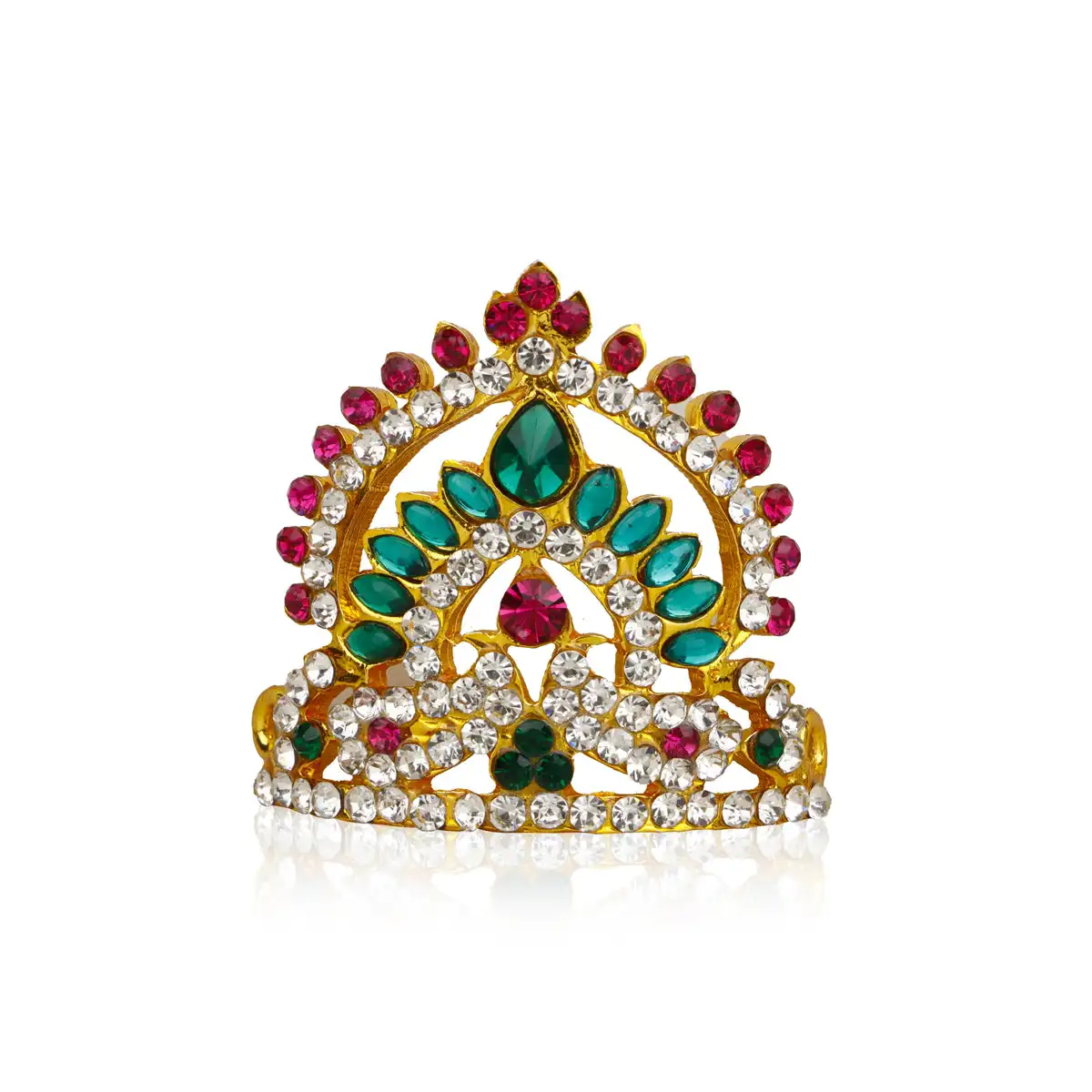 Stone Half Kireedam - 2.5 x 1.5 Inches | Kiridam/ Half Crown/ Multicoloured Stone Mukut for Deity Decor