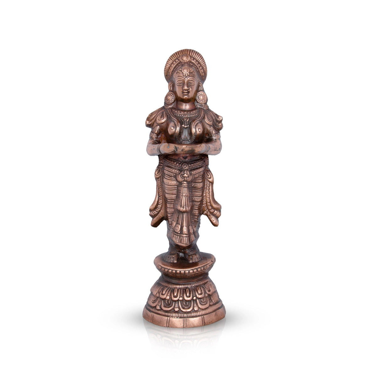 Standing Lady Deepam - 19 x 6 Inches | Copper Oxidised Vilakku/ Lamp for Pooja/ 1.370 Kgs Approx