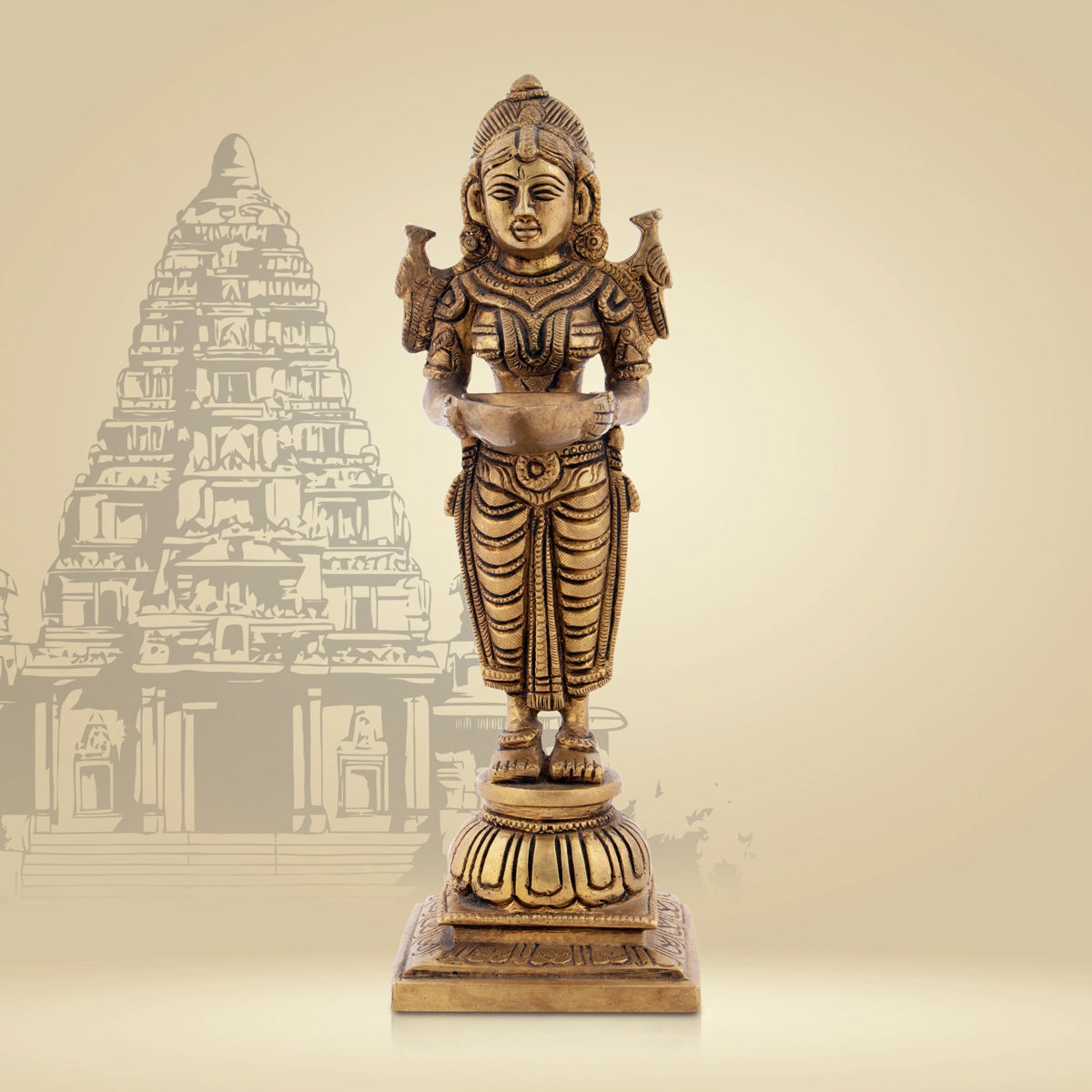 Lady Holding With Brass Lamp - 4 x 1 Inches | Brass Deepam/ Antique Polish Standing Deep Lady for Home