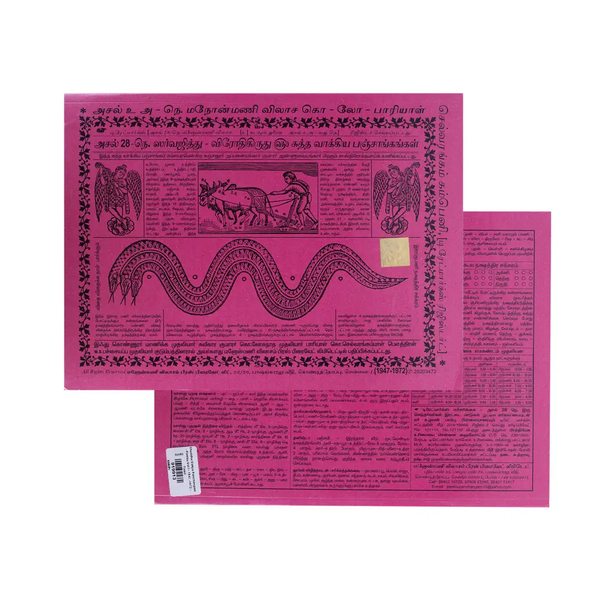 Pambu Panchangam - Volume 1 - Tamil | 1947 - 1972/ Shuddha Vakya Panchangam/ Astrology Book/ Horoscope Book