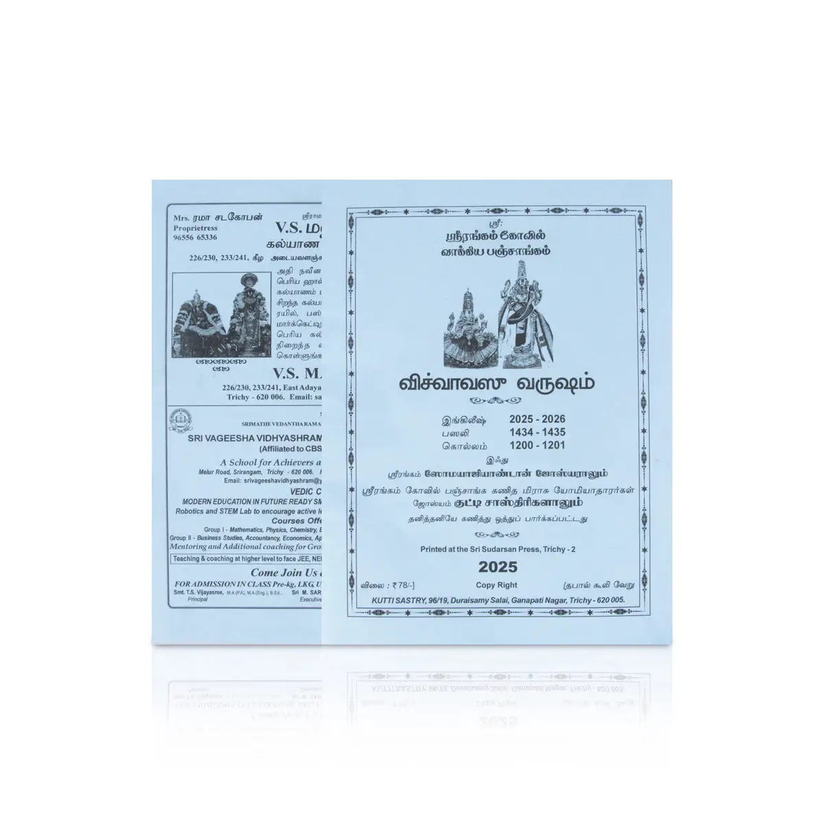 Srirangam Panchangam 2025 - 2026 - Tamil | Vishvavasu Varudam Panchangam Book/ Astrology Book/ Horoscope Book