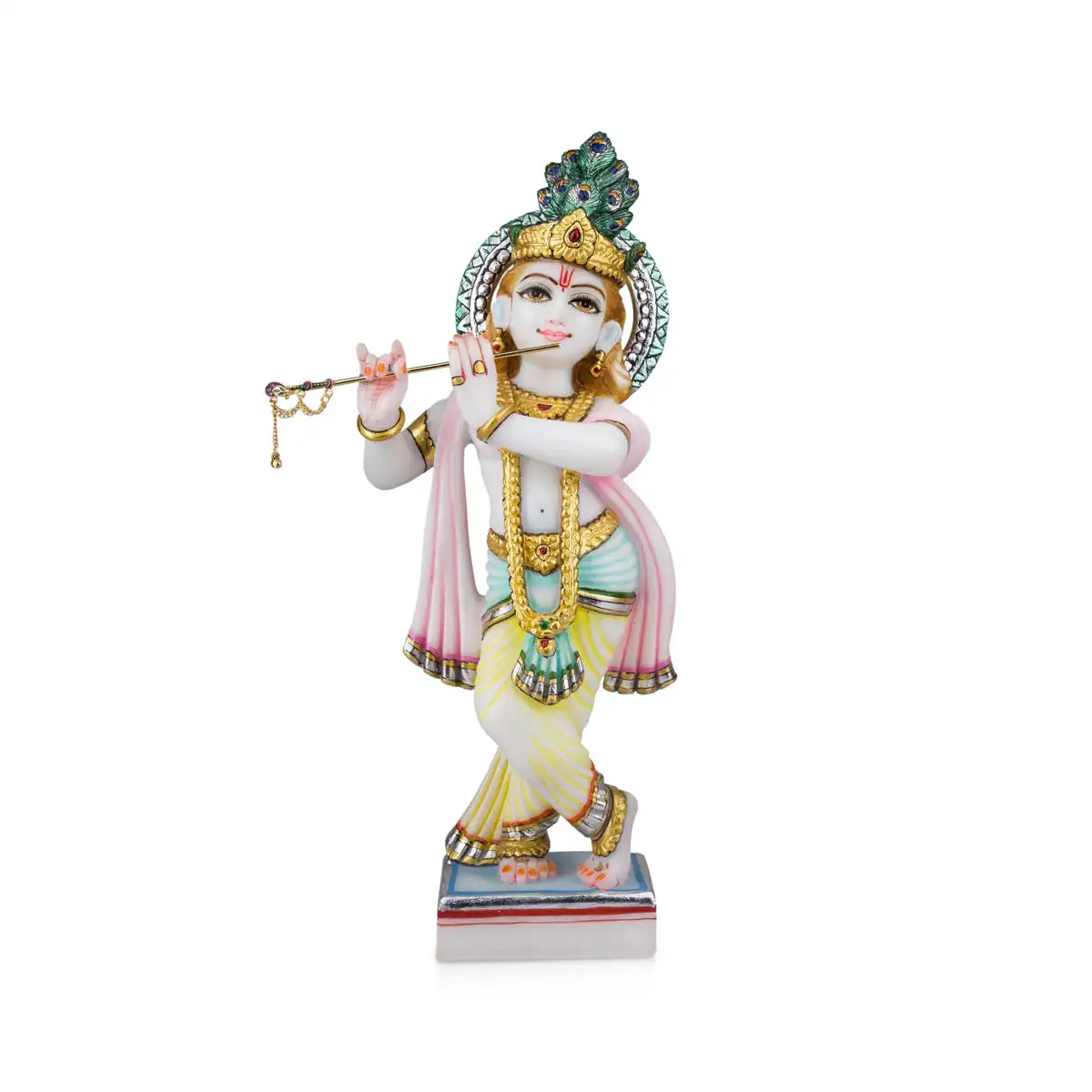 Krishna Murti - 15 x 8 Inches | Marble Murti/ Painted Krishna Idol/ Standing Krishna Statue for Pooja