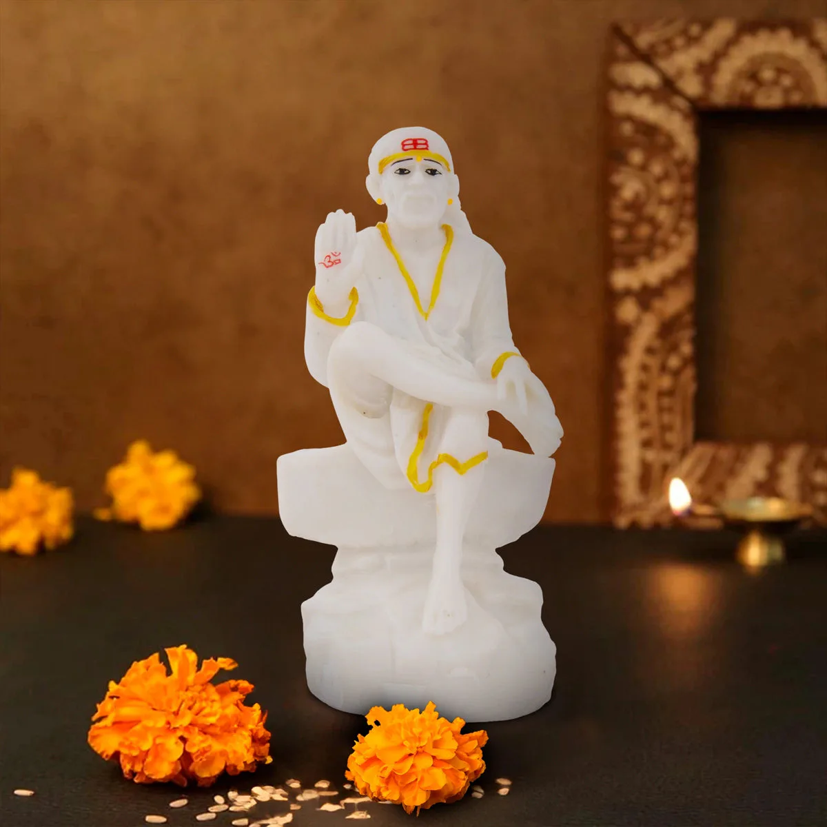 Saibaba Statue Sitting On Base - 6 x 3 Inches | Marble Murti/ Saibaba Idol/ Sai Baba Vigraham for Worship