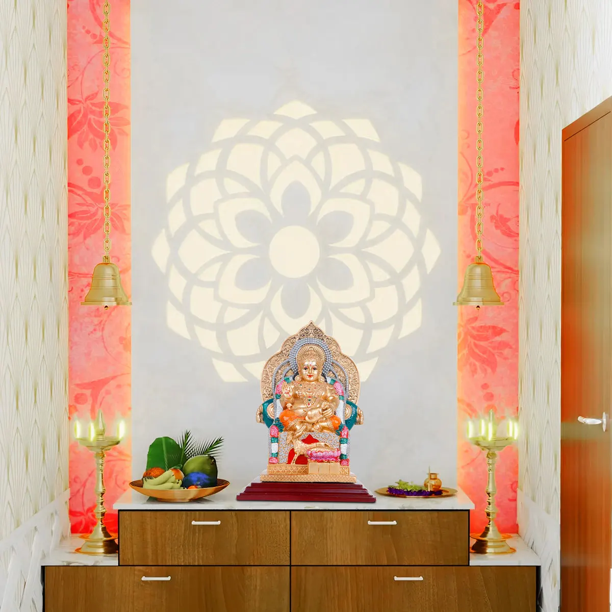 Mayil Murugan - 7 x 4 Inches | Marble Dust Statue/ Wooden Polish Peacock Murugar for Pooja