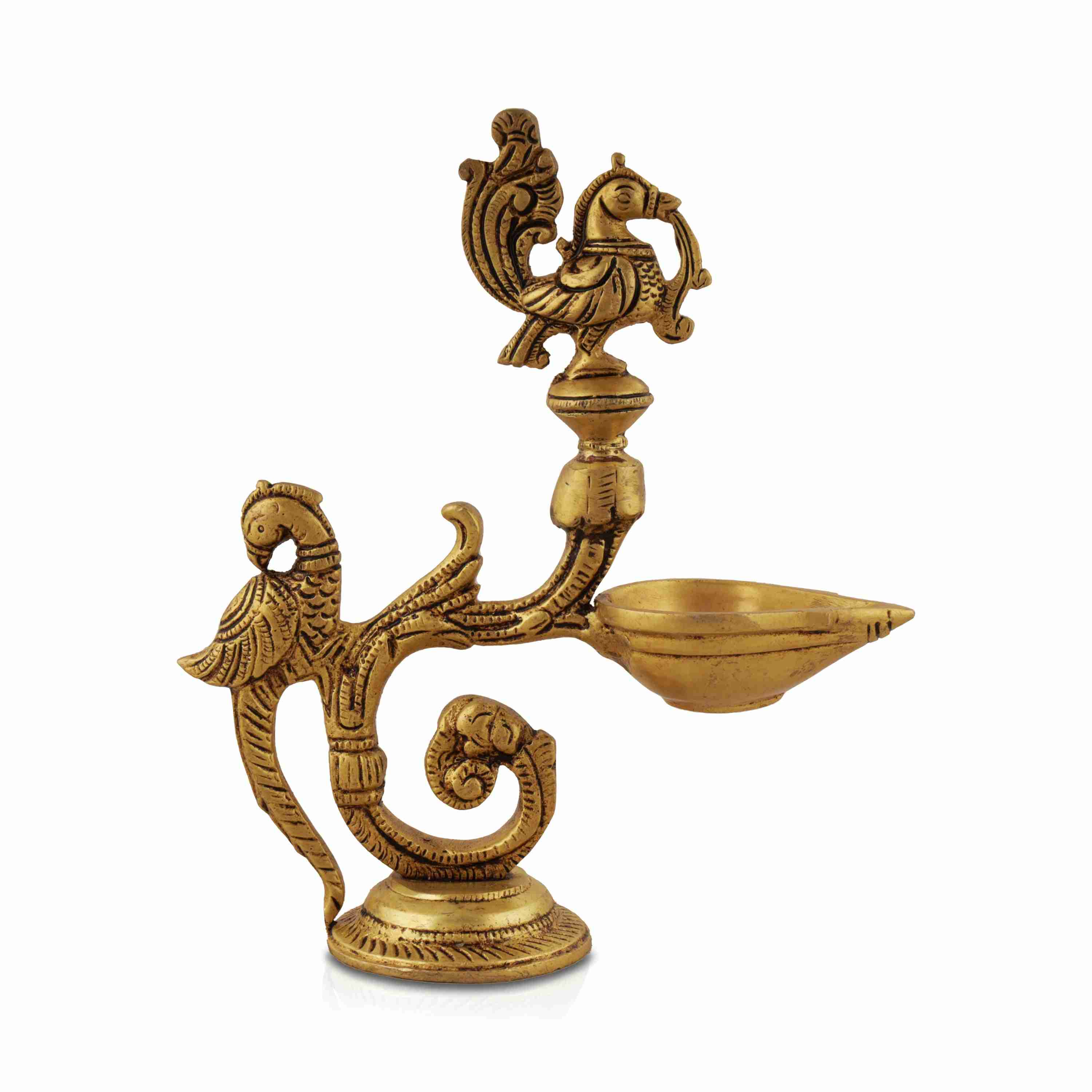 Agal Deepam with Parrot Handle - 8 x 7 Inches | Agal Vilakku/ Brass Lamp for Pooja/ 720 Gms Approx
