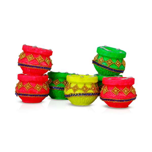 Decorative Diya Set - 2 x 2 Inch | 6 Pcs/ Agal Vilakku/ Clay Deepam for Pooja/ Assorted Design