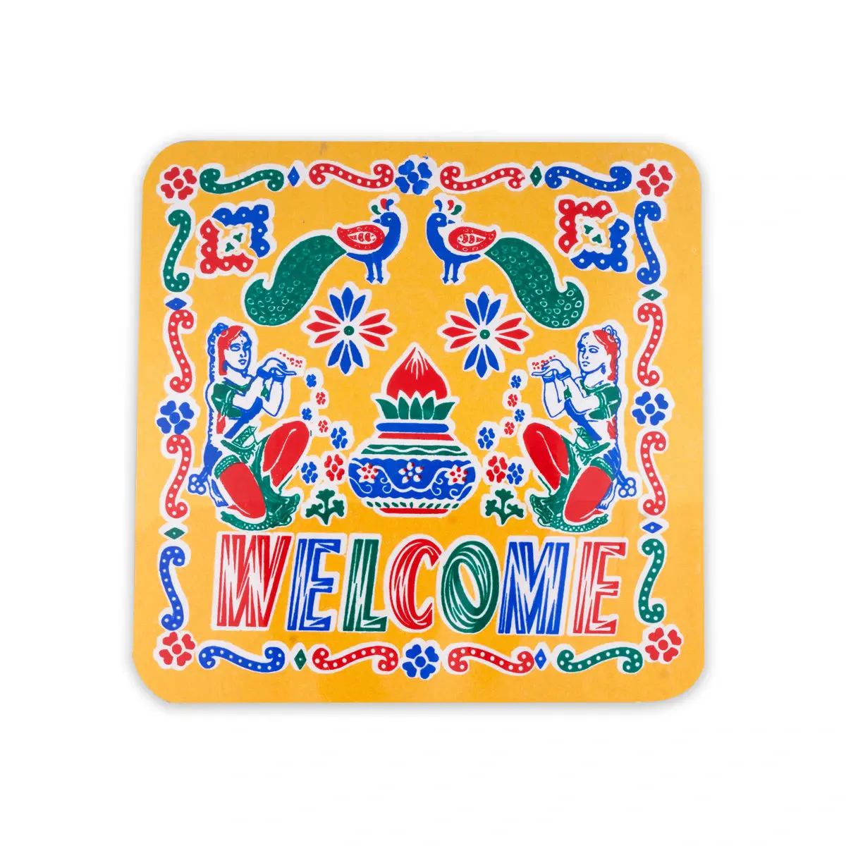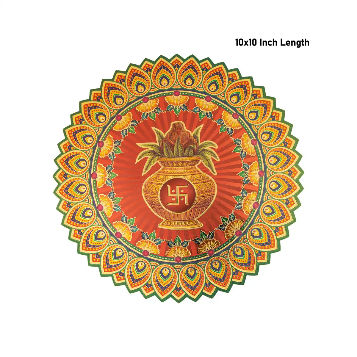 Rangoli Sticker - 10 x 10 Inches | Kalash Design Kolam Sticker/ Rangoli Design Sticker for Home Decor