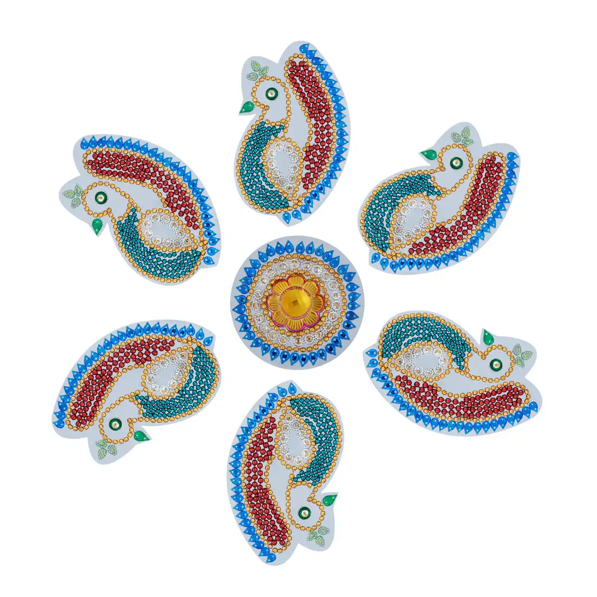 Peacock Rangoli - 4 Inches | Peacock Kolam/ Kolam Design for Floor Decor