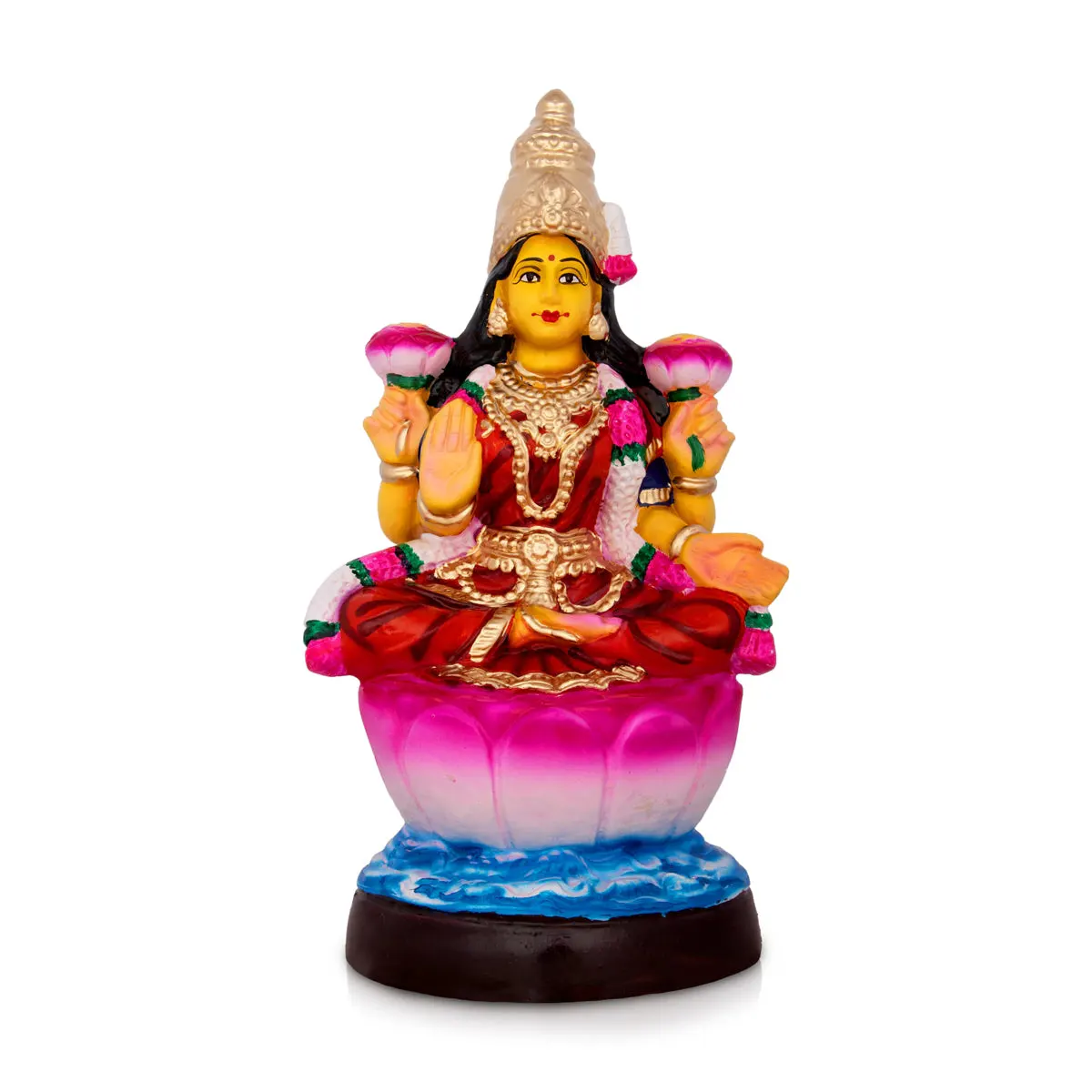 Lakshmi Sitting On Lotus Paper Mache Golu Bommai - 17 x 9 Inches | Giri Golu Doll/ Navaratri Golu Bomma/Gombe/Bommai