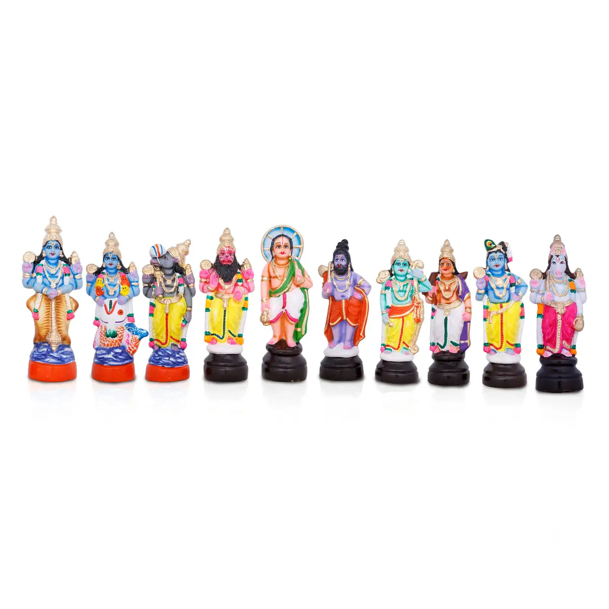 Dasavatharam Paper Mache Golu Bommai Set - 10 x 3 Inches | Giri Golu Doll/ Navaratri Golu Bomma/Gombe/Bommai