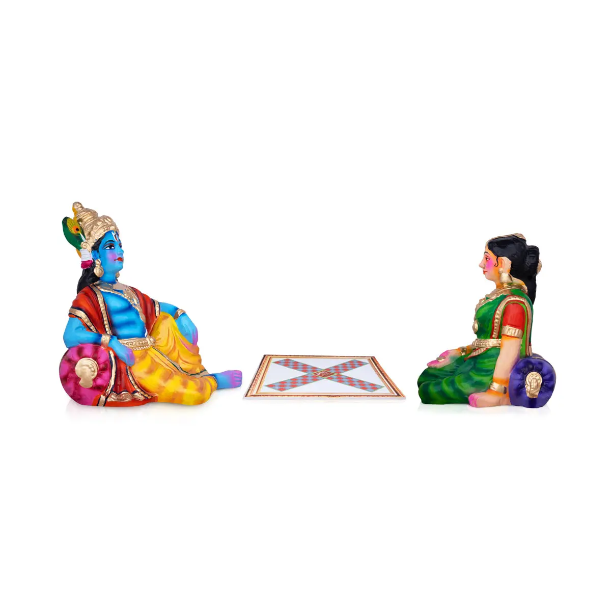 Krishna Radha Thayam Aduthal Paper Mache Golu Bommai Set - 9 x 5 Inches | Giri Golu Doll/ Navaratri Golu Bomma