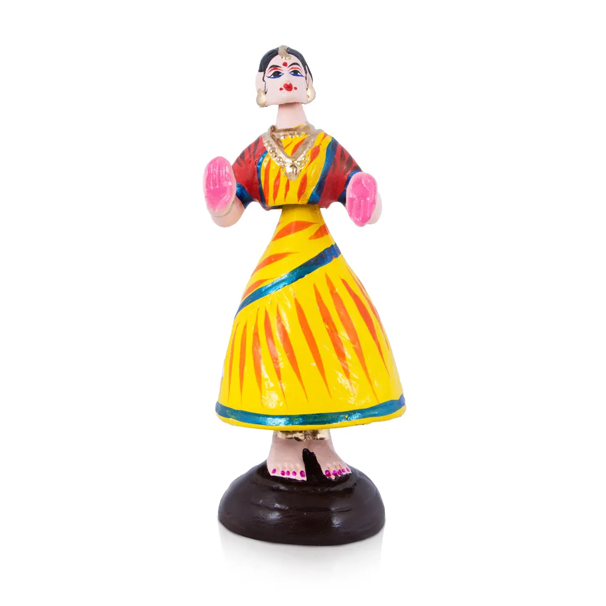 Dancing Doll Paper Mache Golu Bommai - 10 x 3.5 Inches | Giri Golu Doll/ Navaratri Golu Bomma/Gombe/Bommai