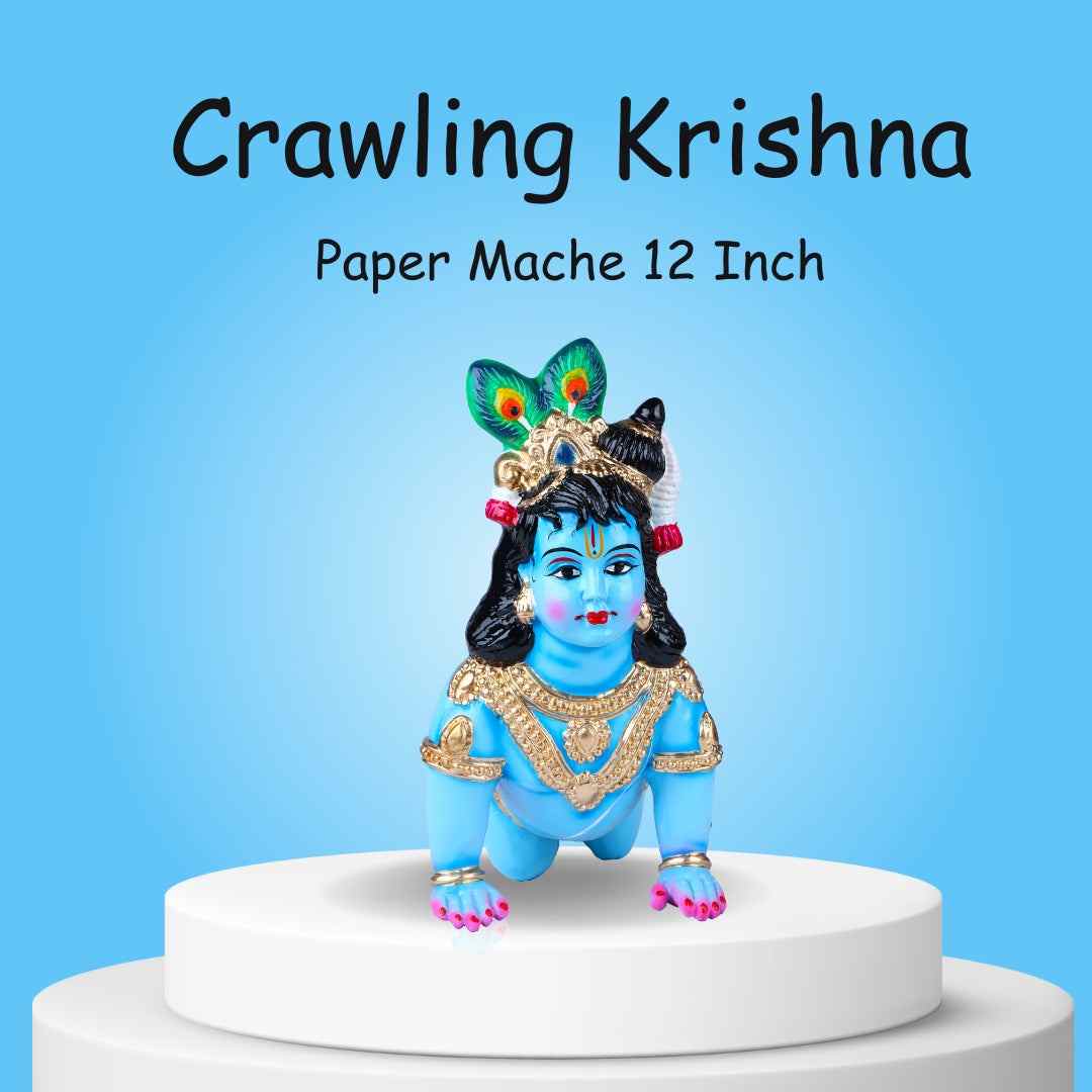 Crawling Krishna Idol - 12 Inches | Giri Golu Doll/ Paper Mache/ Little Krishna Statue/ Navarathri Doll