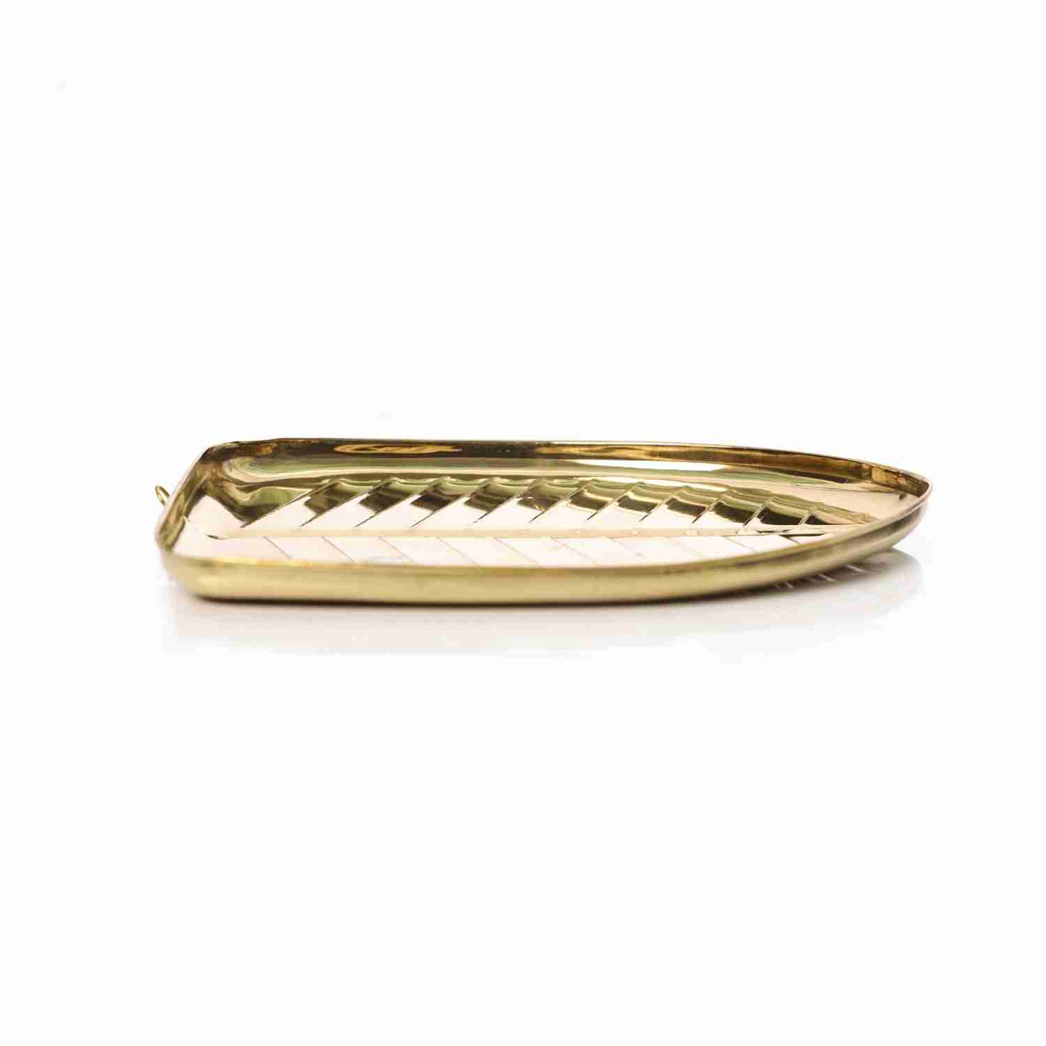 Brass Plate - 9.5 x 7.5 Inches | Banana Leaf Design Thali Plate/ Pooja Plate/ Pooja Thali for Home