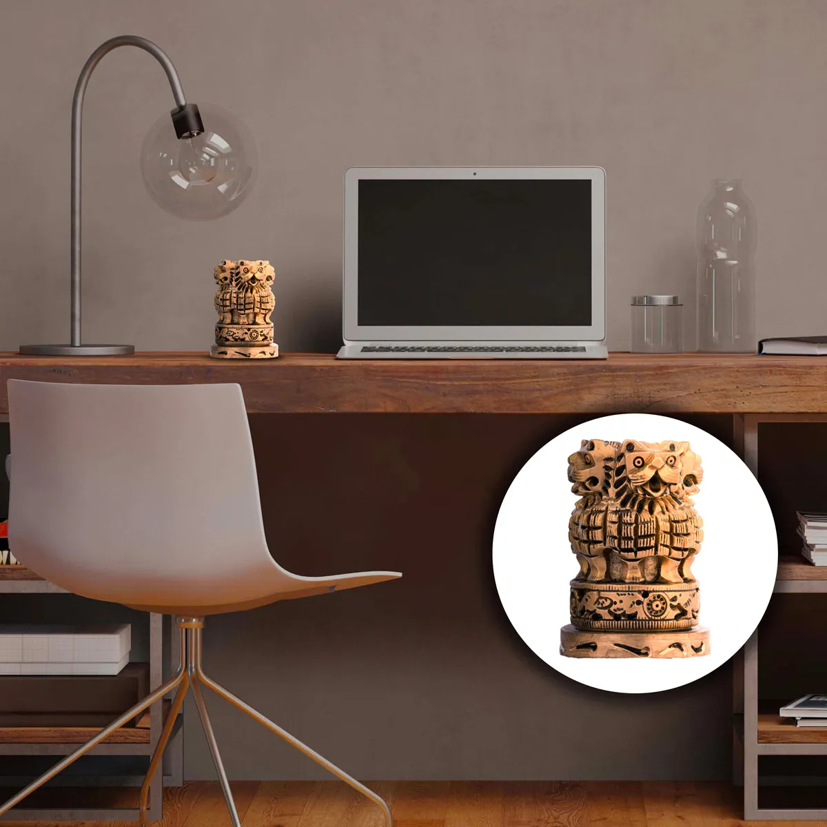 Pen Jar with Elephant Inlaid - 4 x 3 Inches | Wooden Pen Stand/ Pen Holder