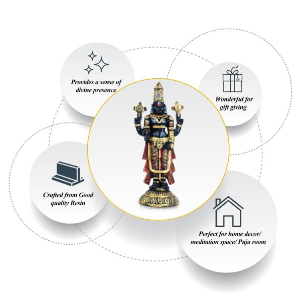 Balaji Murti - 11 Inches | Tirupati Balaji Idol/ Resin Balaji Statue for Home Decor