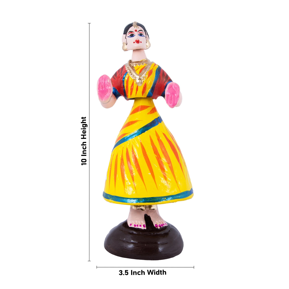 Dancing Doll Paper Mache Golu Bommai - 10 x 3.5 Inches | Giri Golu Doll/ Navaratri Golu Bomma/Gombe/Bommai