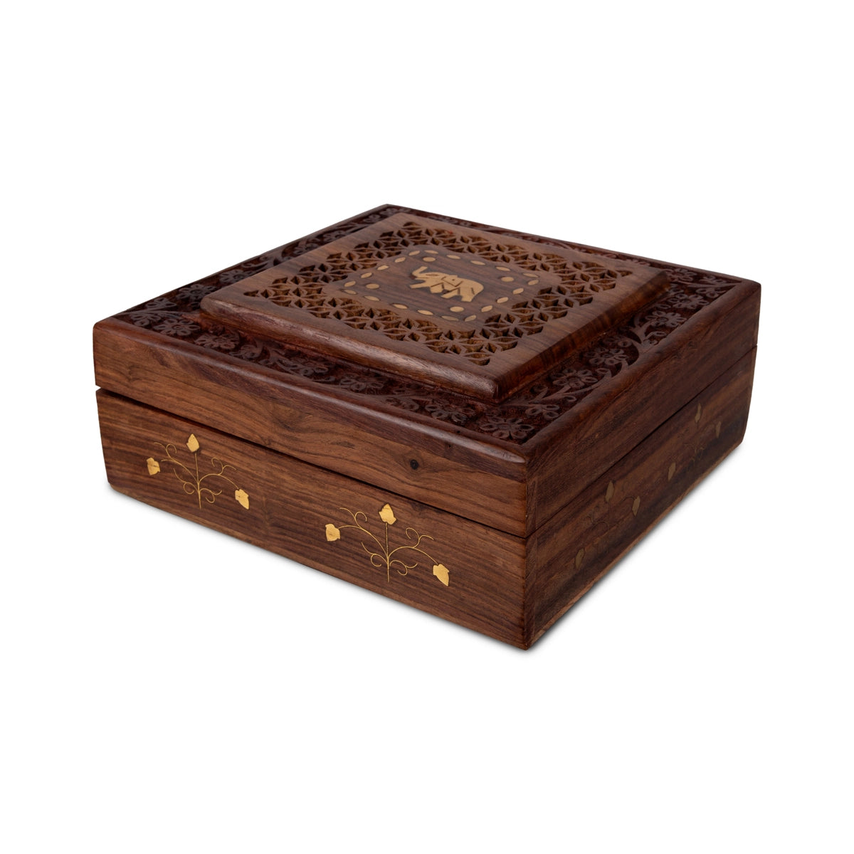 Jewel Box - 3 x 8 Inches | Elephant Inlaid Design Storage Box/ Wooden Box for Women