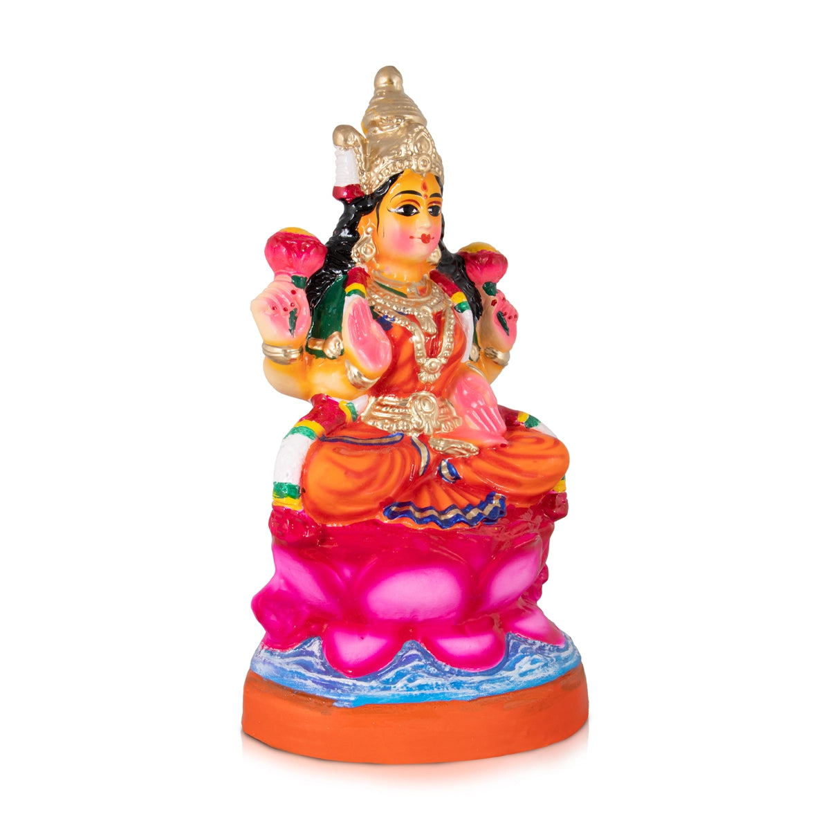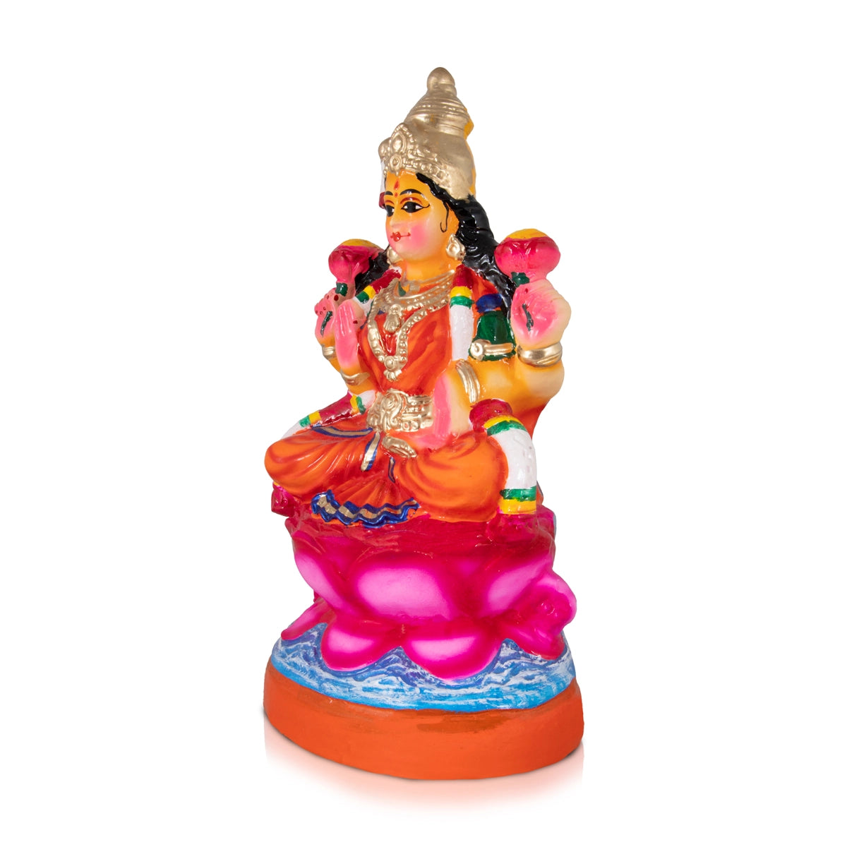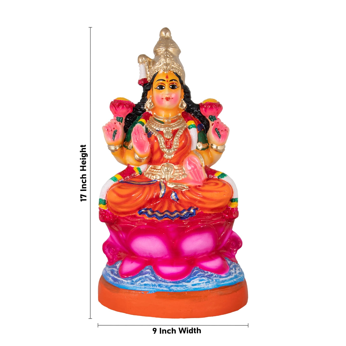 Lakshmi Sitting On Lotus Paper Mache Golu Bommai - 17 x 9 Inches | Giri Golu Doll/ Navaratri Golu Bomma/Gombe/Bommai