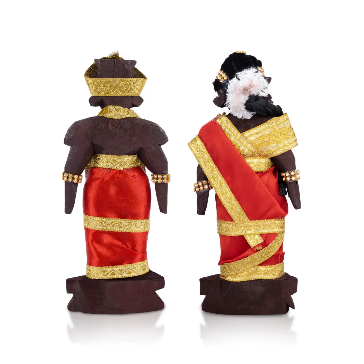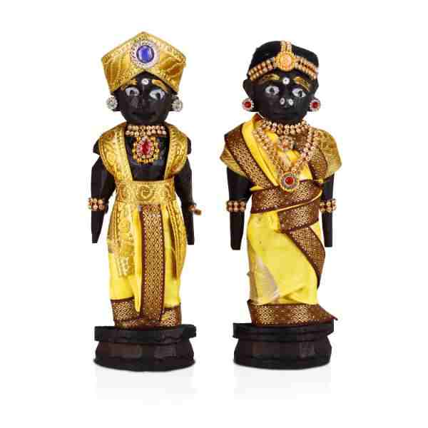 Marapachi Bommai Pair - 7 X 2.5 Inches | Wooden Statue/ Kolu Bommai/ Decorated Marapachi Doll For Golu Display