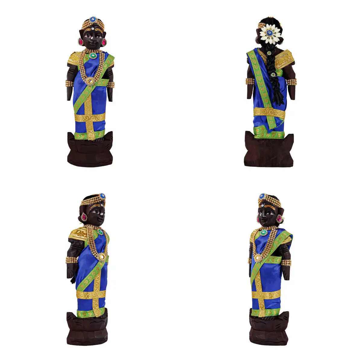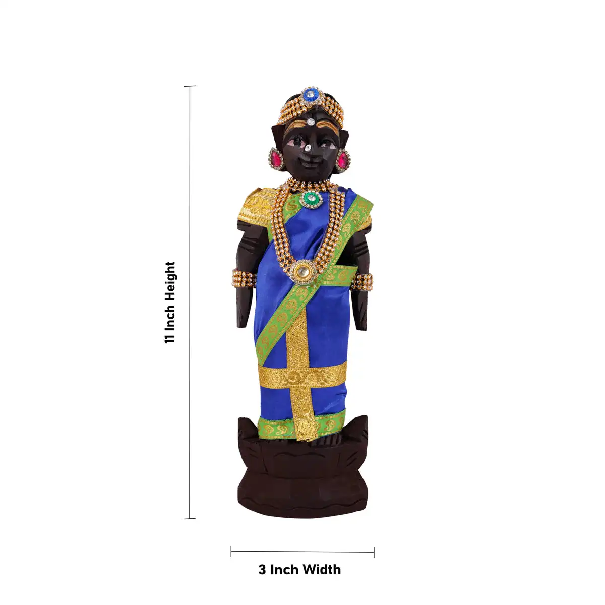 Marapachi Bommai With Alankaram Pair - 11 x 3 Inches | Wood Sculpture/ Marapachi Doll/ Kolu Bommai for Navaratri