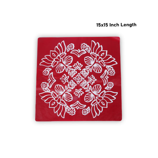 Maroon Kolam Sticker - 15 x 15 Inches | 2 Pcs/ Rangoli Sticker for Pooja Room Decor/ Assorted Design