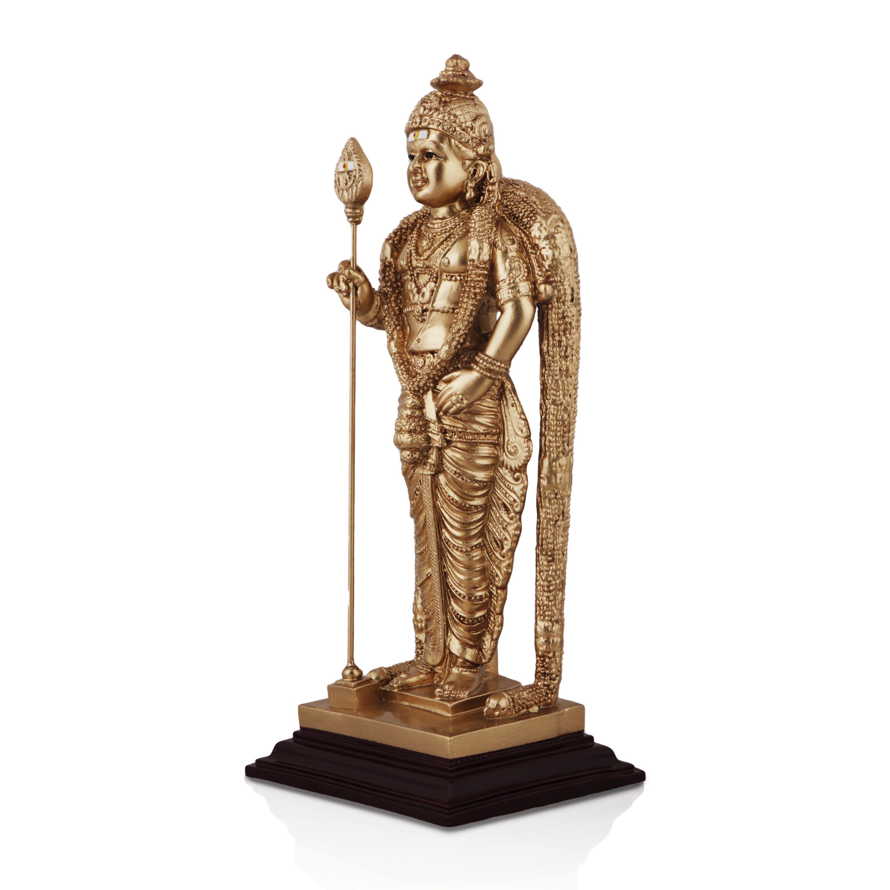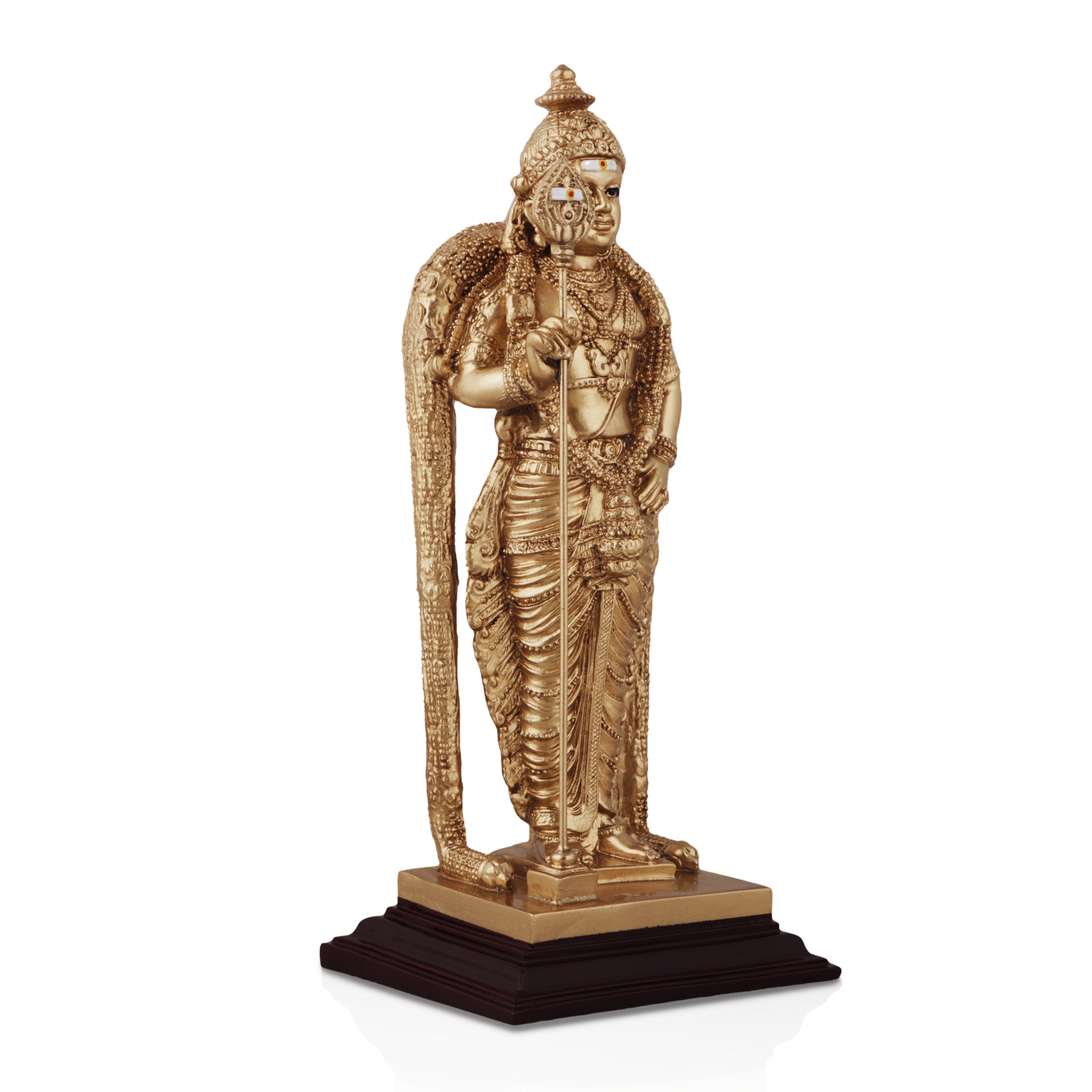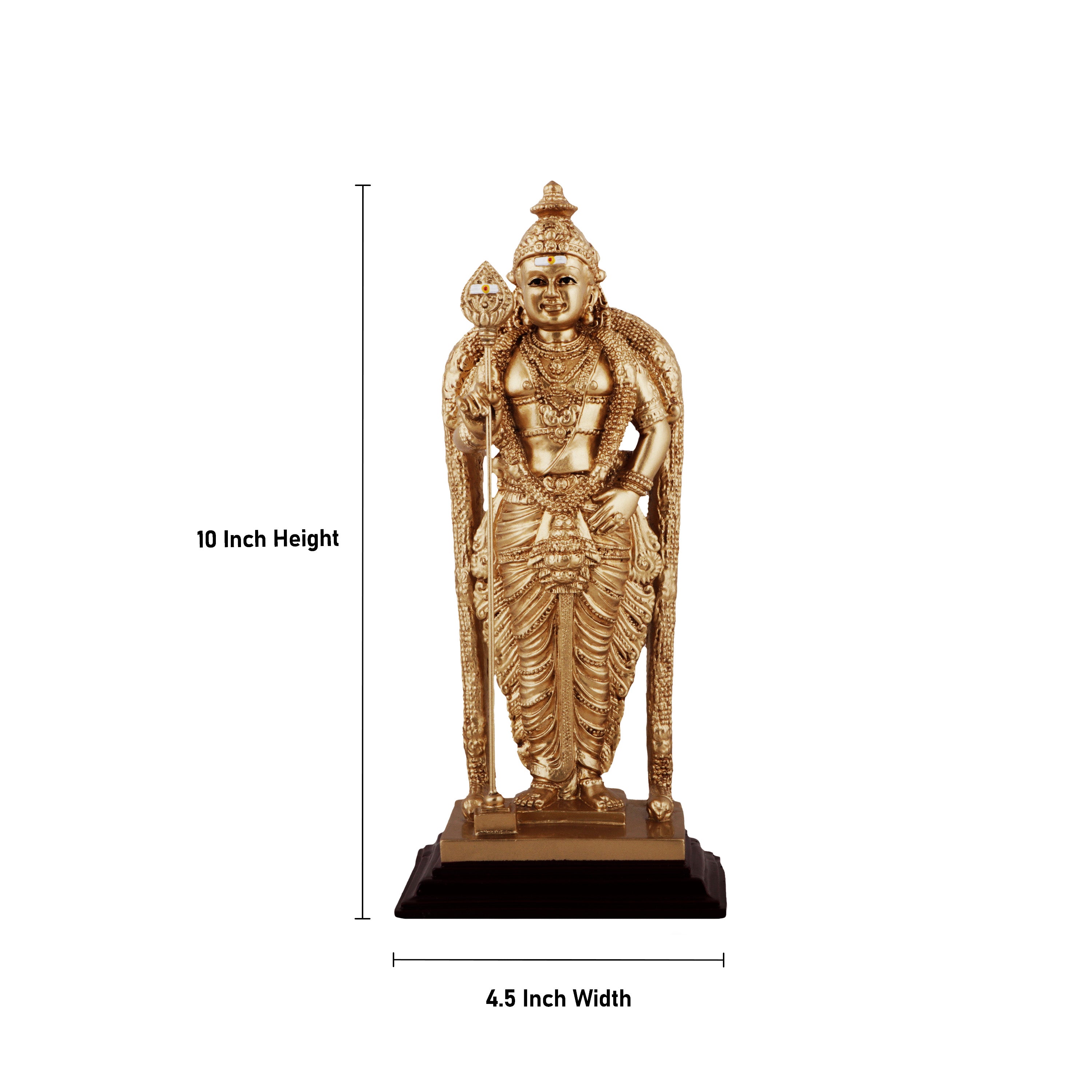 Murugan Statue - 10 x 4.5 Inches | Standing Murugan Idol/ Resin & Gold Polish Murugan Silai for Pooja