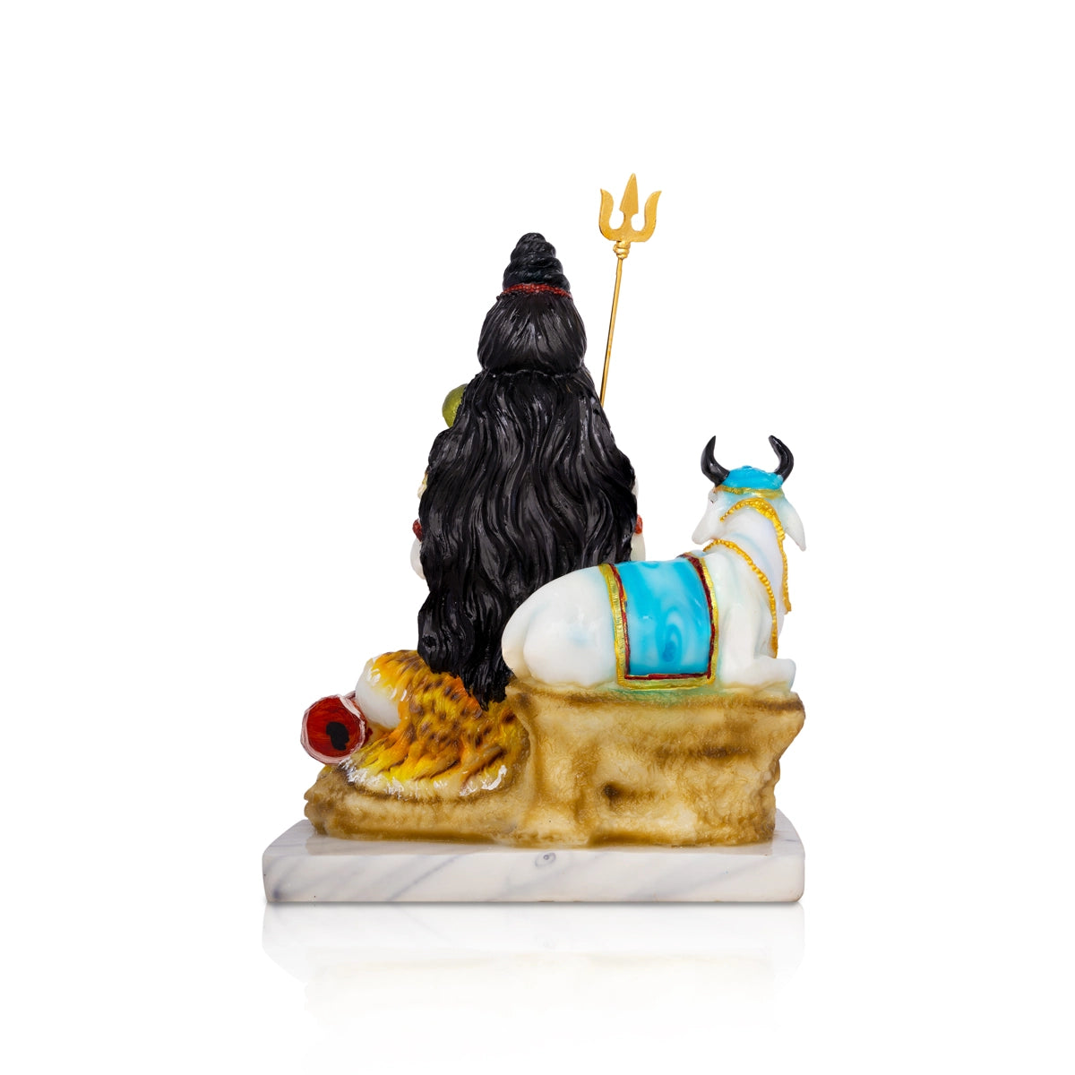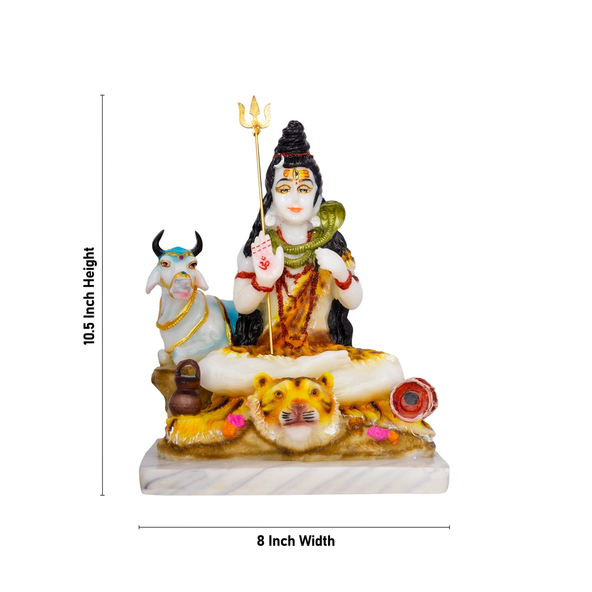 Shiva Statue With Nandi Statue - 10.5 x 8 Inches | Marble Dust Murti/ Coloured Shiv Statue for Pooja