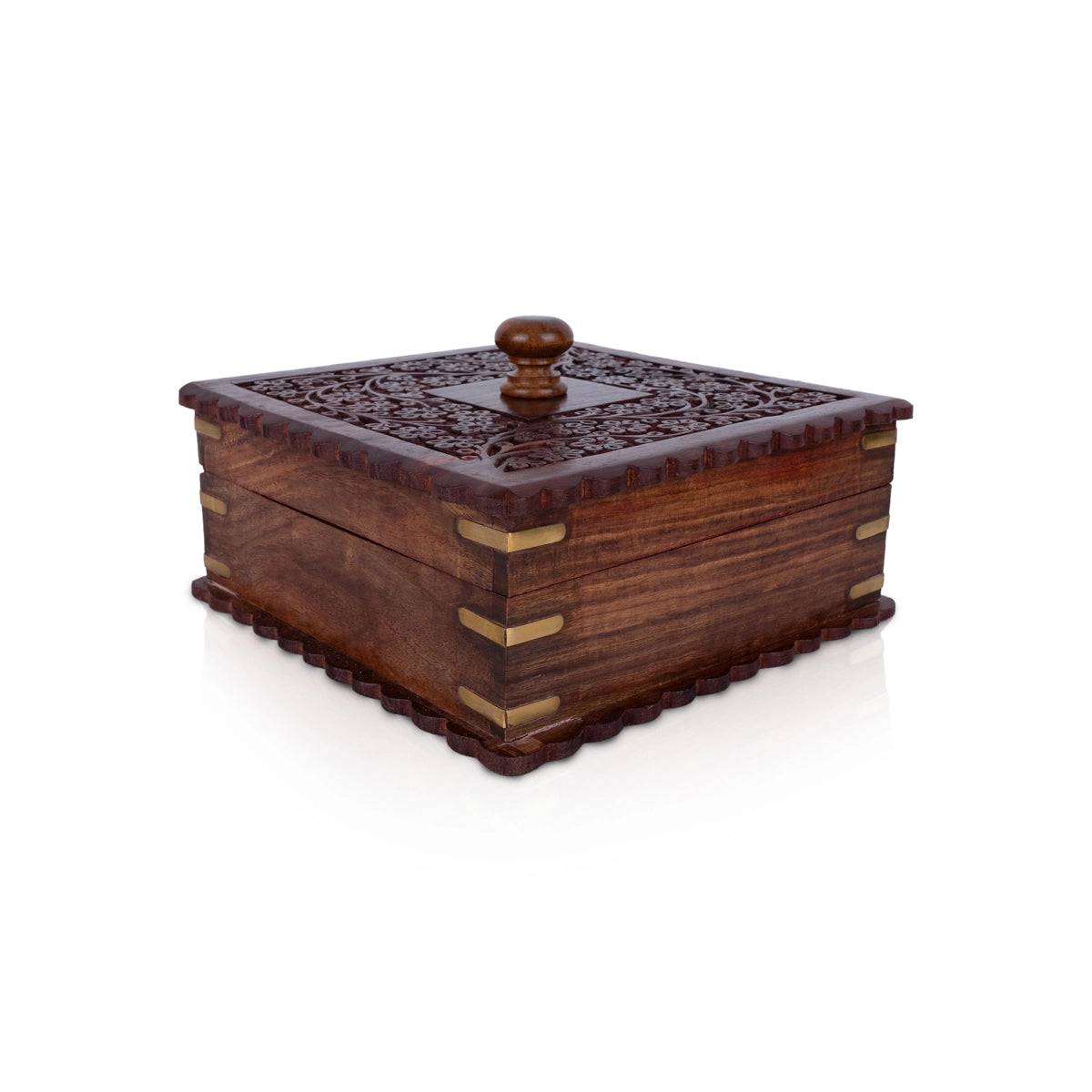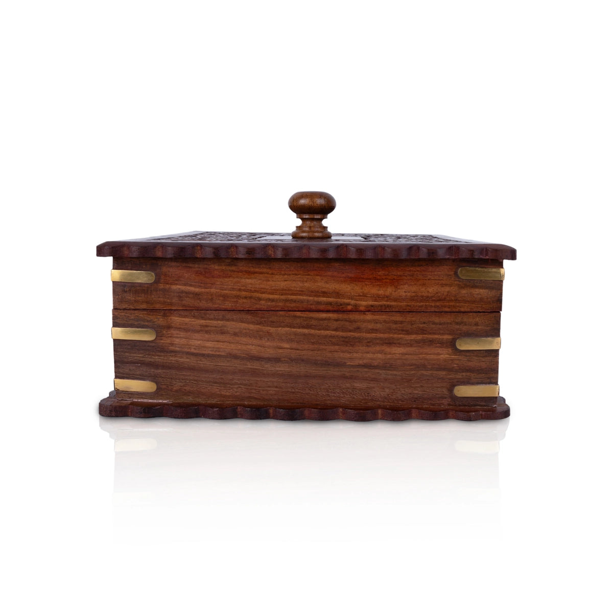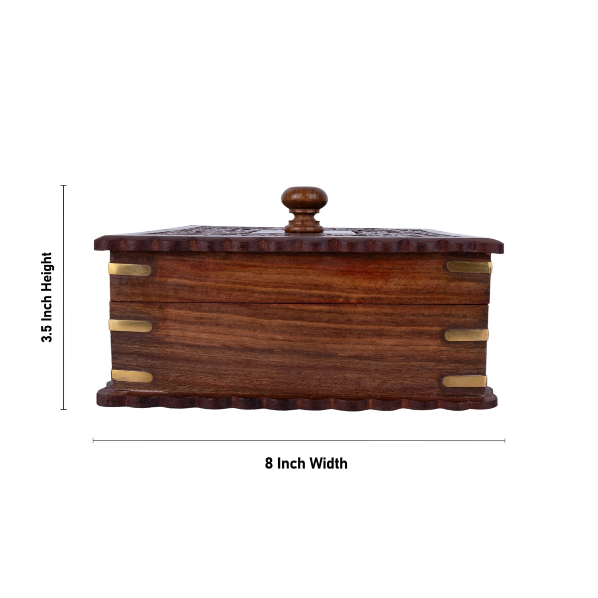 Storage Box - 3.5 x 8 Inches | Engraved Wooden Box/ Dry Fruit Box/ Jewellery Box for Women