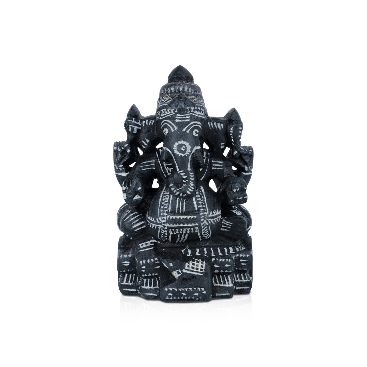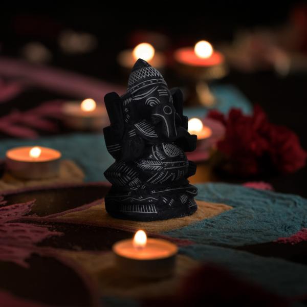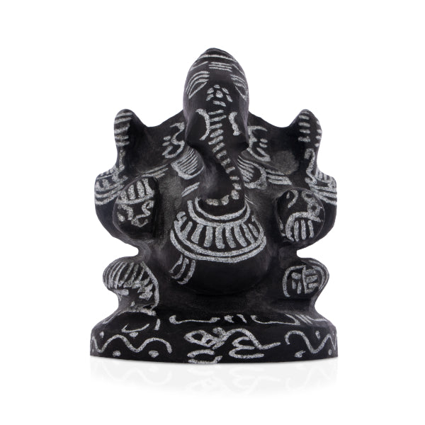 Ganesh Murti - 3 x 3 Inches | Black Stone Ganpati Murti/ Sitting Vinayaka Statue for Pooja