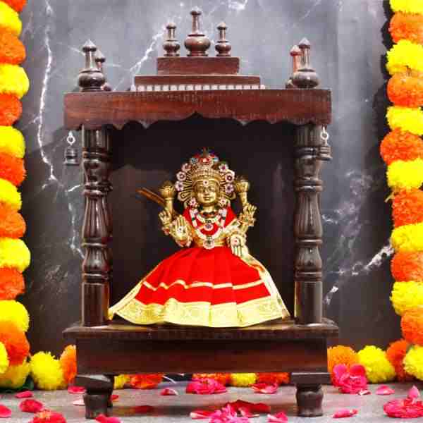 Open Pooja Mandir With Base - 15 X 10 Inches | Puja Stand/ Mandapam/ Wooden Temple For Home And Pooja Room